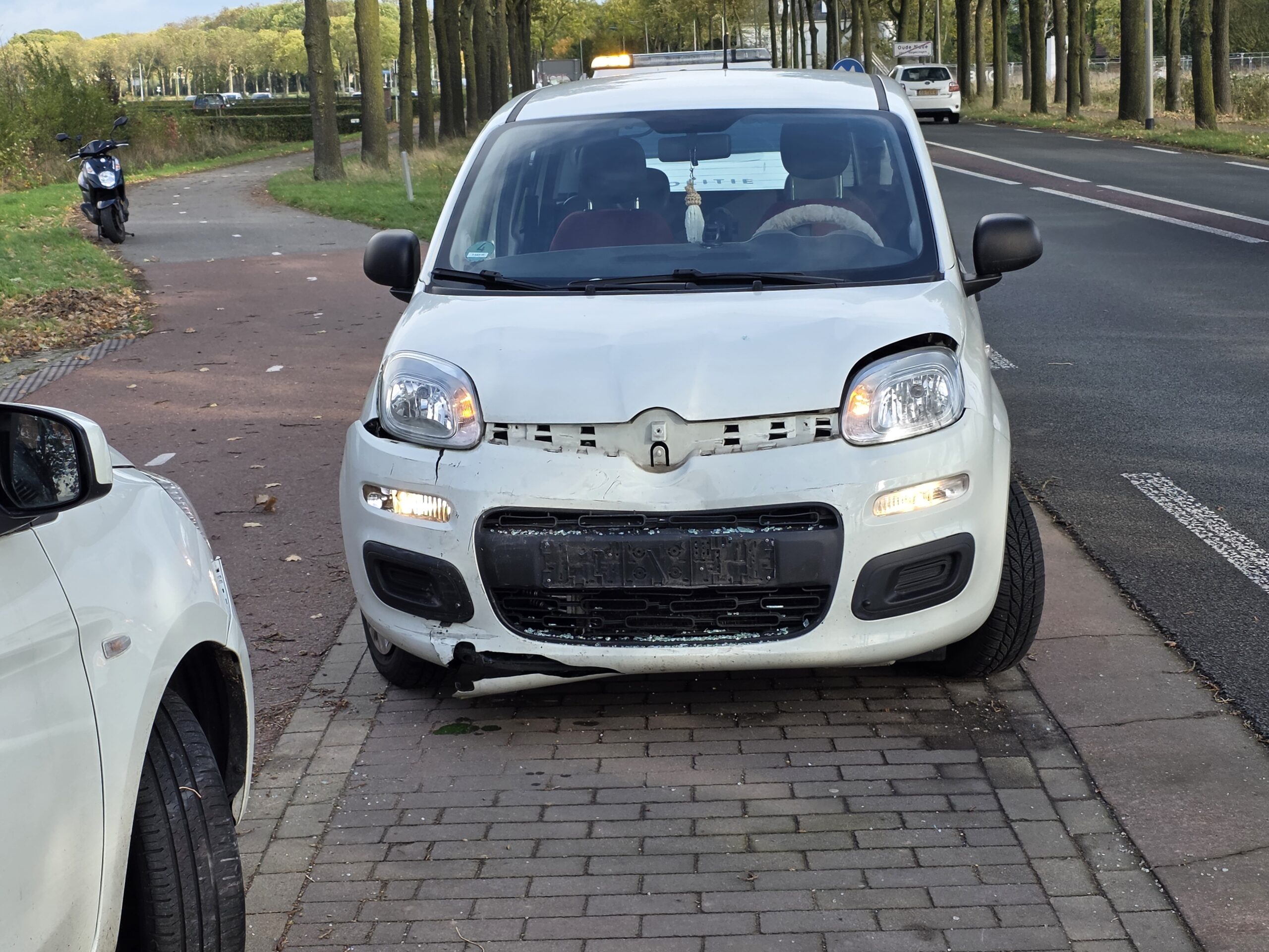 Twee dames raakten gewond en werden ter plaatse door ambulancepersoneel nagekeken. Zij hoefden niet naar het ziekenhuis. De aanrijding gebeurde toen de bestuurder van een witte Mitsubishi probeerde te keren op de weg en daarbij de naderende Fiat Panda over het hoofd zag. Beide voertuigen raakten zwaar beschadigd en werden afgesleept.