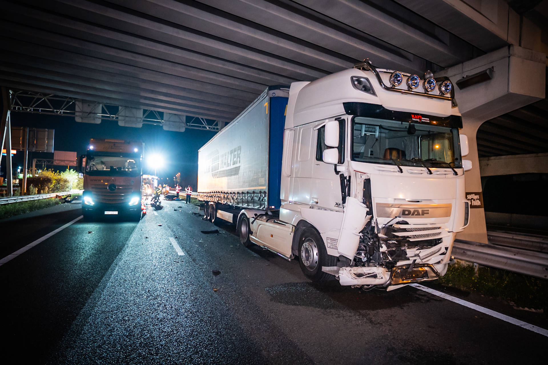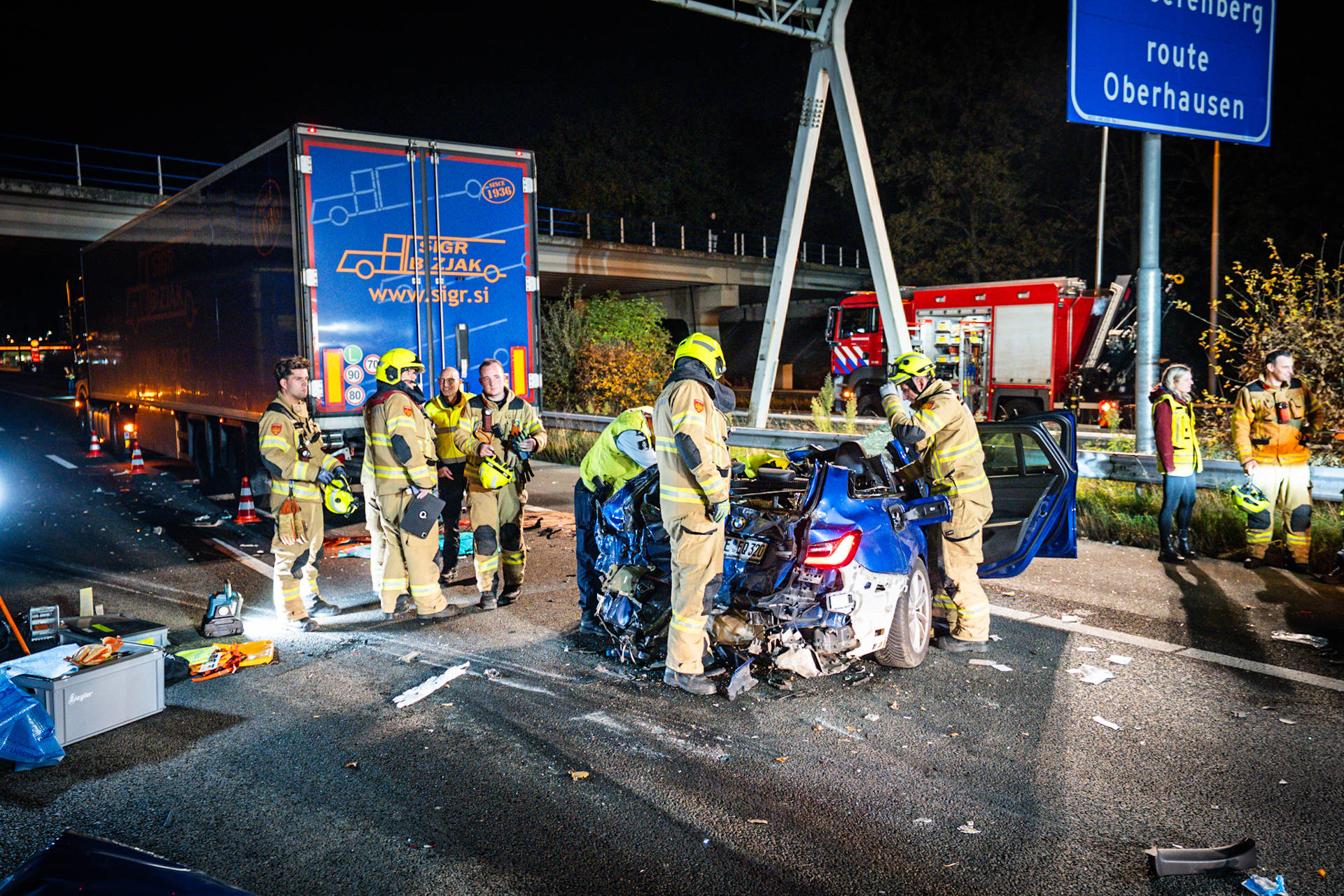 De auto stond stil achter een vrachtwagen in de file voor de grenscontrole toen een achteropkomende vrachtwagenchauffeur dit te laat opmerkte. Ondanks een poging om uit te wijken, kon een botsing niet meer worden voorkomen. De auto werd tussen beide vrachtwagens klemgereden. Hulpdiensten kwamen massaal ter plaatse en een traumahelikopter landde op de snelweg om assistentie te verlenen. Het slachtoffer zat bekneld in het voertuig en moest door hulpverleners worden bevrijd. De man is met spoed per ambulance naar het ziekenhuis gebracht. Zijn verwondingen zijn ernstig.