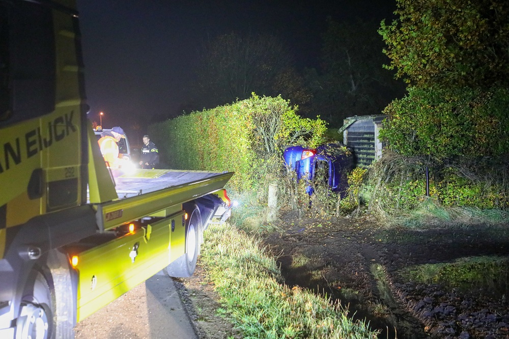 LUNTEREN – Vrijdagavond rond 22.15 uur is een automobiliste op de Klomperweg in Lunteren met haar voertuig van de weg geraakt. Ze reed vanuit Ederveen richting Lunteren en belandde, vermoedelijk door onbekende oorzaak, in een weiland. De auto kwam op z’n kant tot stilstand tegen een houten schuurtje.