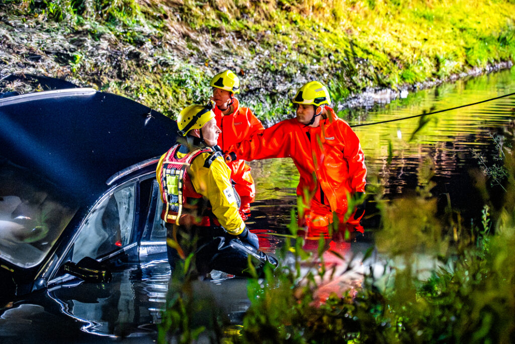 Bij aankomst troffen de hulpdiensten een doorweekte man aan die aangaf bijrijder te zijn. Hij verklaarde dat een collega de auto had bestuurd, maar kon niet zeggen waar die collega zich bevond. De man sprak geen Nederlands en kon geen identiteitsbewijs of rijbewijs tonen. Ook bleek hij niet in staat om contact op te nemen met de vermeende bestuurder. De politie vermoedt daarom dat hij mogelijk zelf de auto heeft bestuurd.