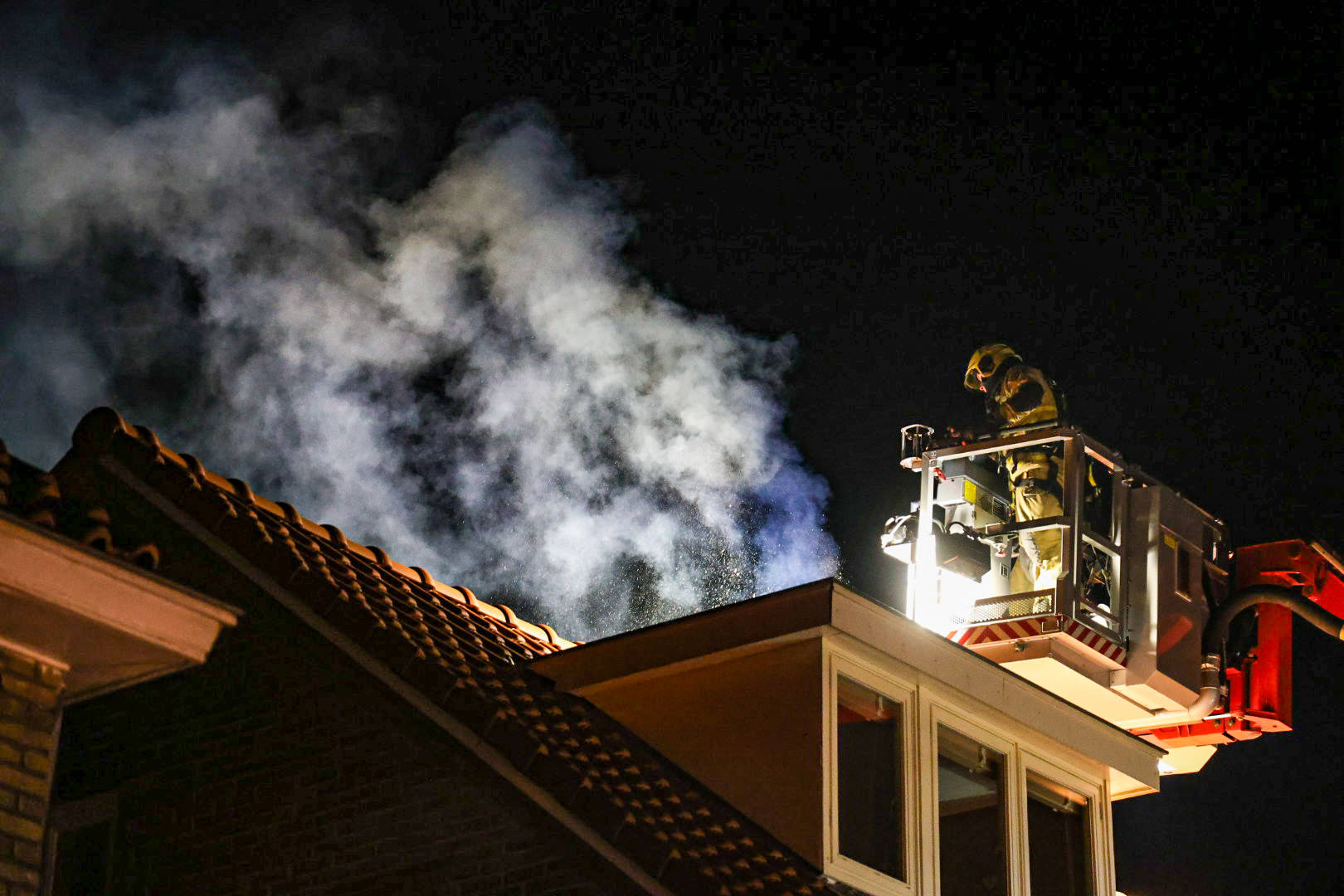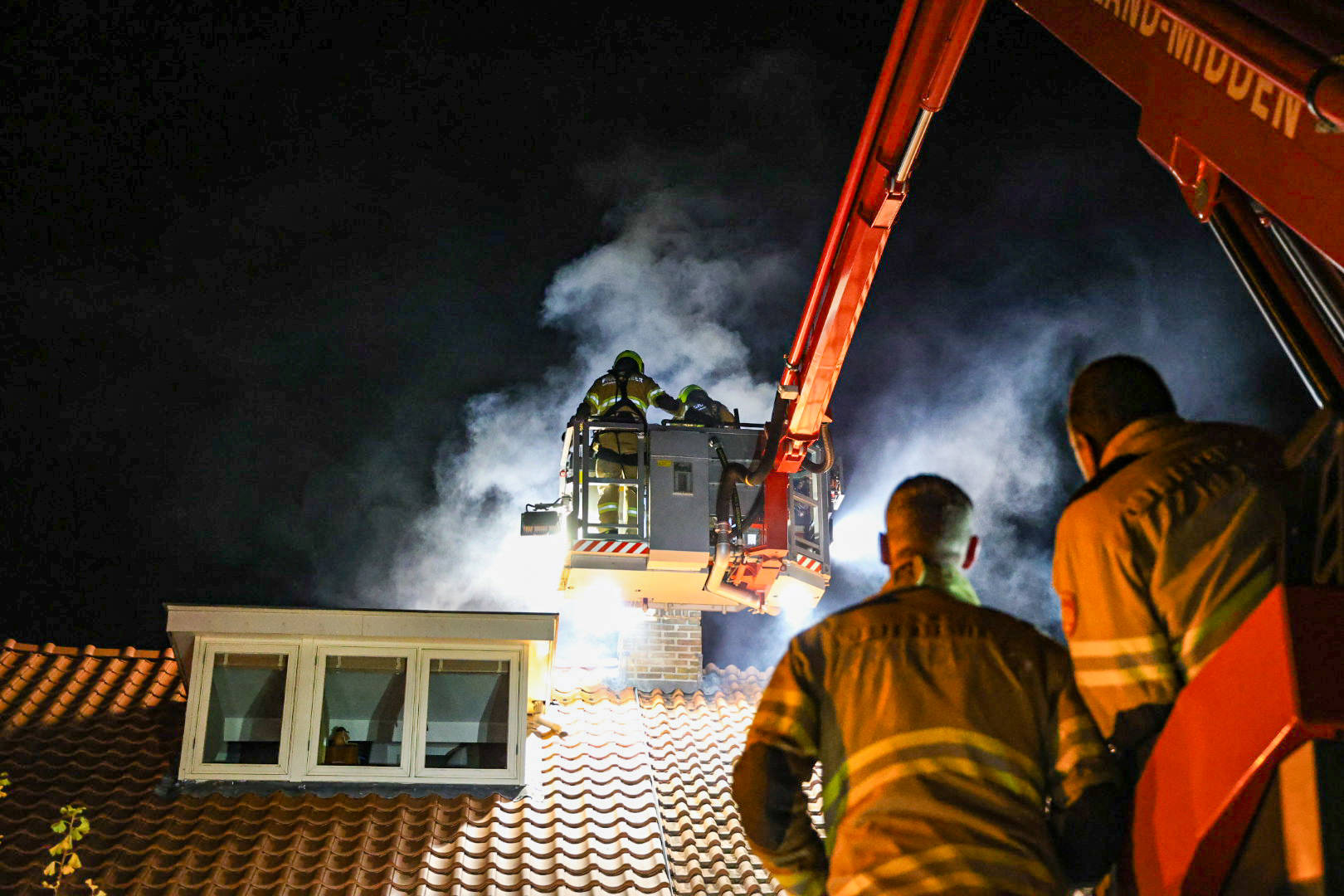 Er is veel brandend materiaal met emmers uit de schoorsteen verwijderd. Na anderhalf uur was de brand nog steeds niet onder controle. Aanliggende woningen werden gecontroleerd op mogelijke doorslag van het vuur.