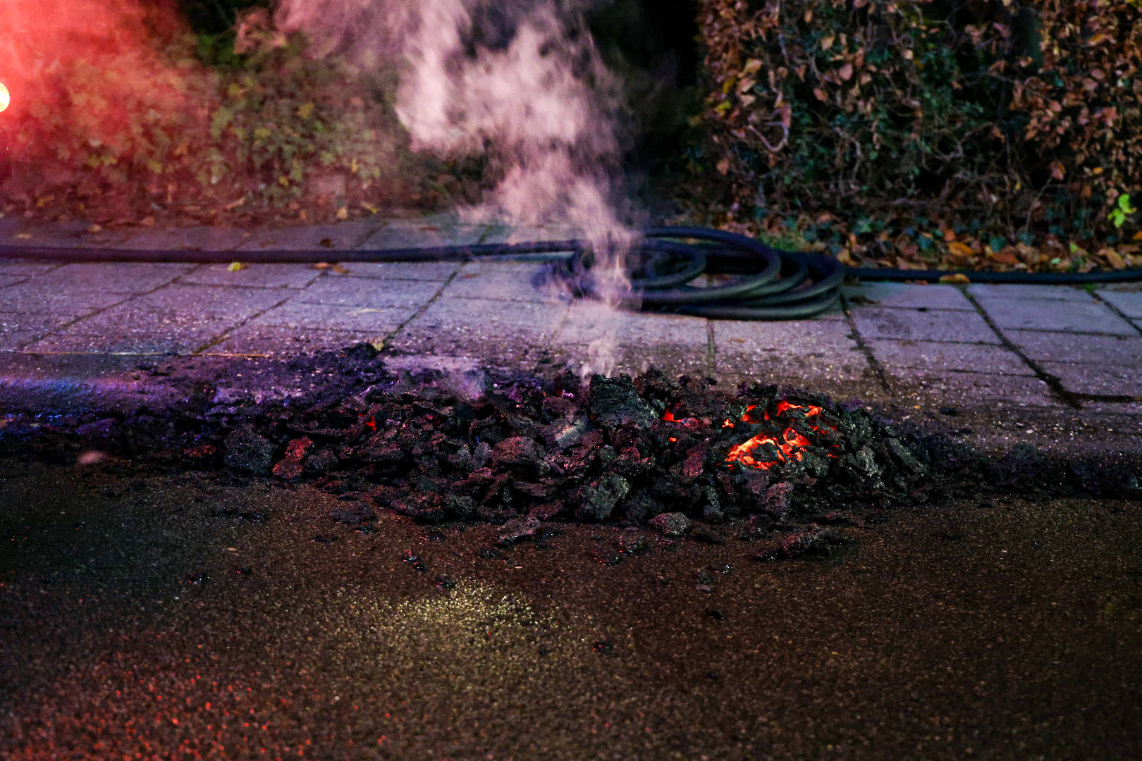 Rond 20.00 uur kwam de melding binnen, waarna twee brandweervoertuigen ter plaatse kwamen. Met speciaal gereedschap dat door de schoorsteenpijp op en neer werd bewogen, werd geprobeerd het vuur te doven. Tijdens deze pogingen sloegen grote vlammen uit de pijp.