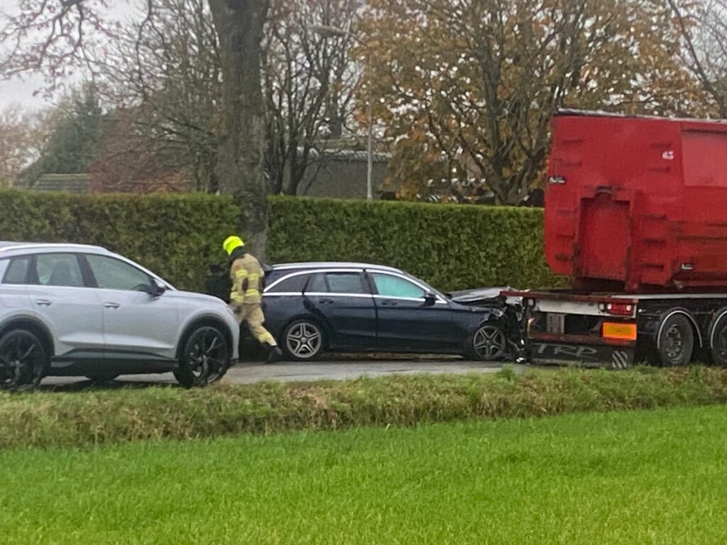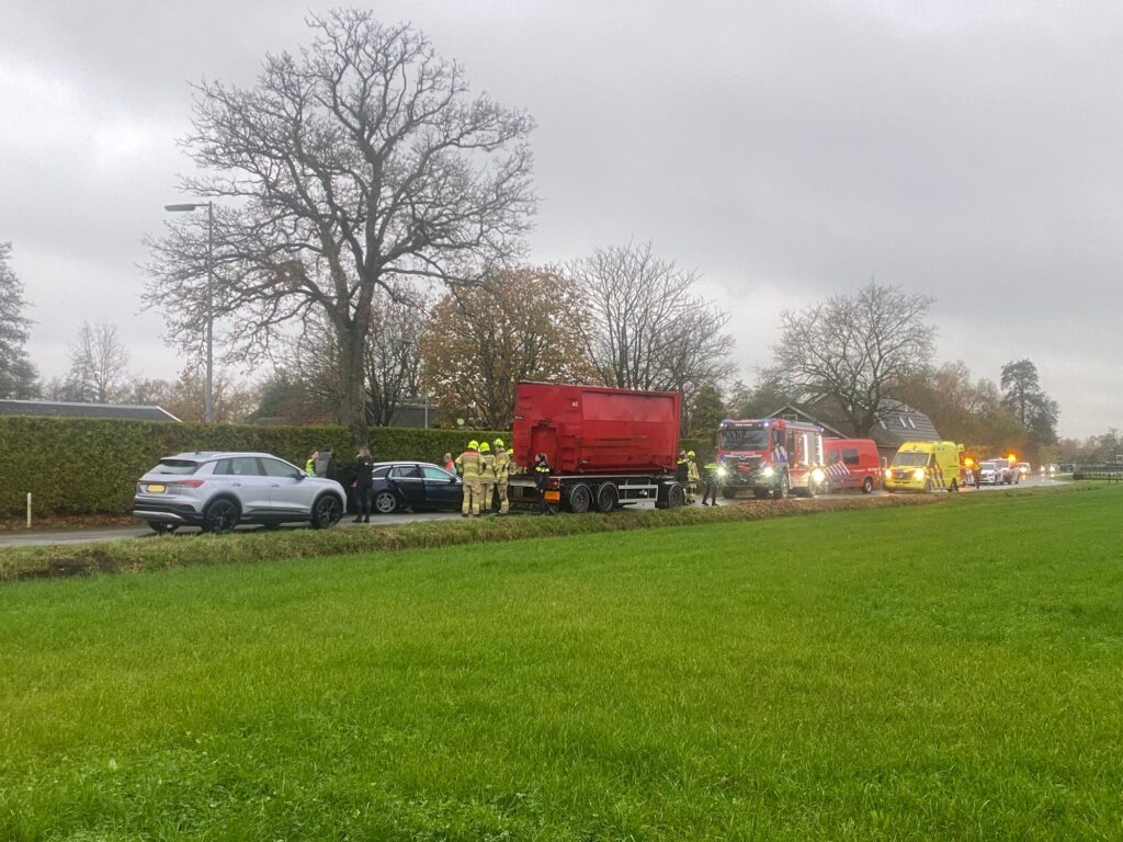 Auto botst op geparkeerde aanhanger, meerdere hulpdiensten ingezet