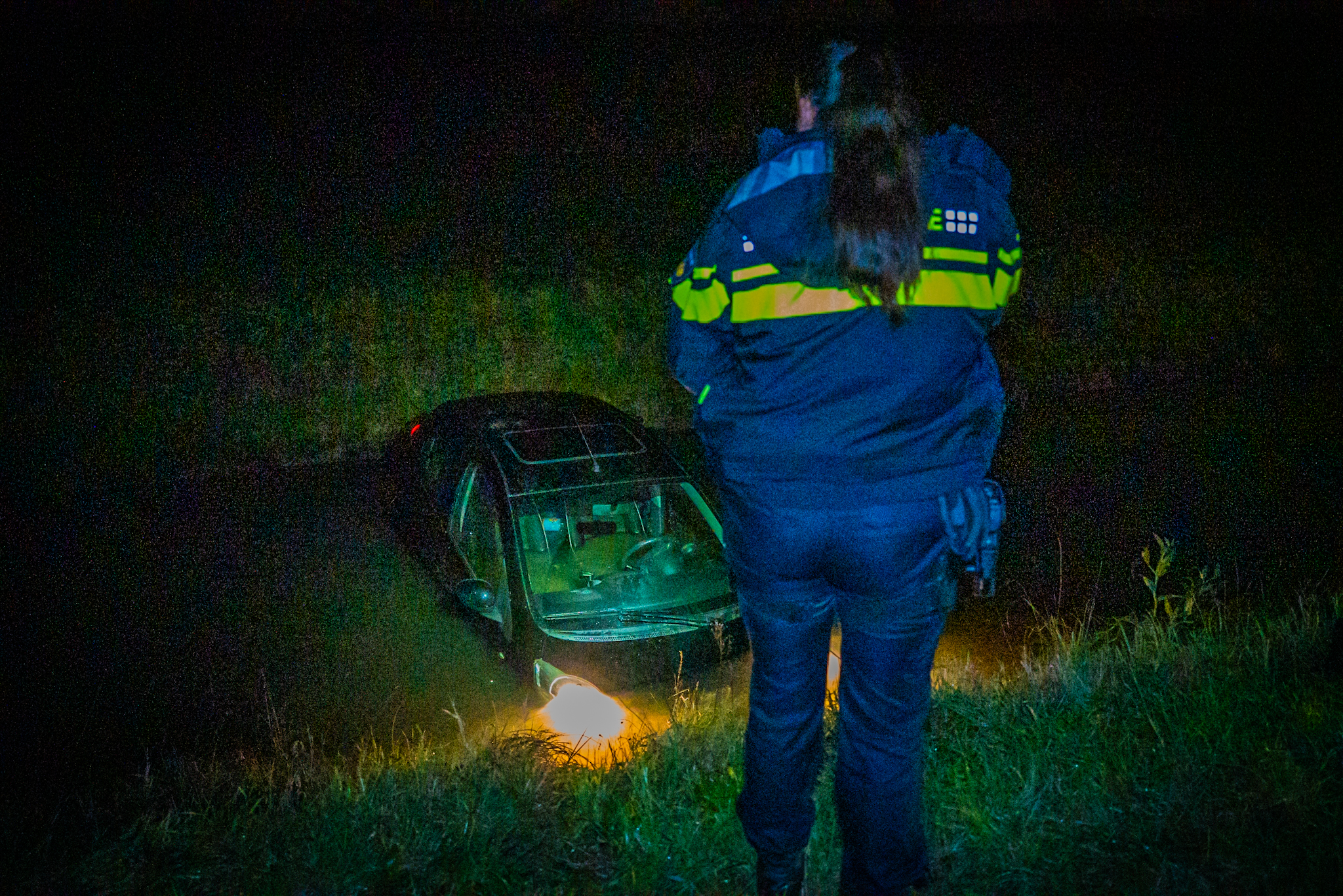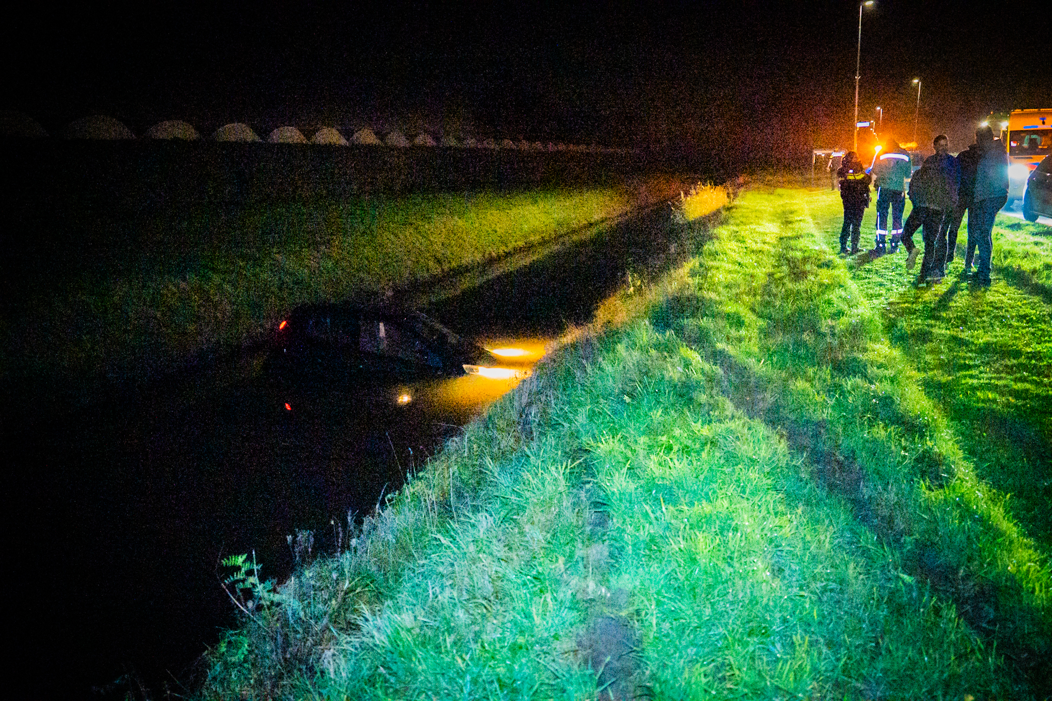 Een bergingsbedrijf heeft de auto uit de sloot gehaald. De toedracht van het ongeval is niet bekend.
