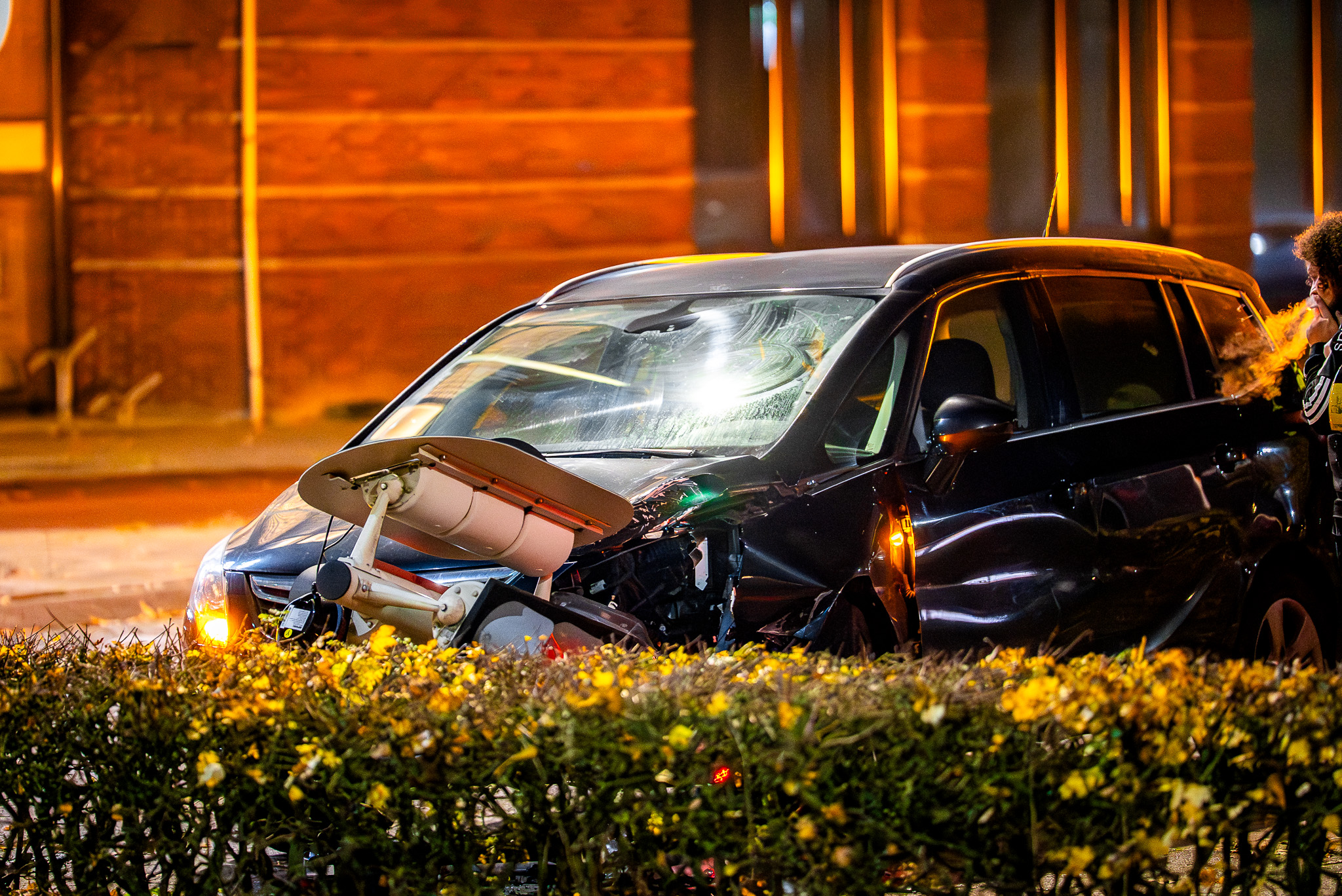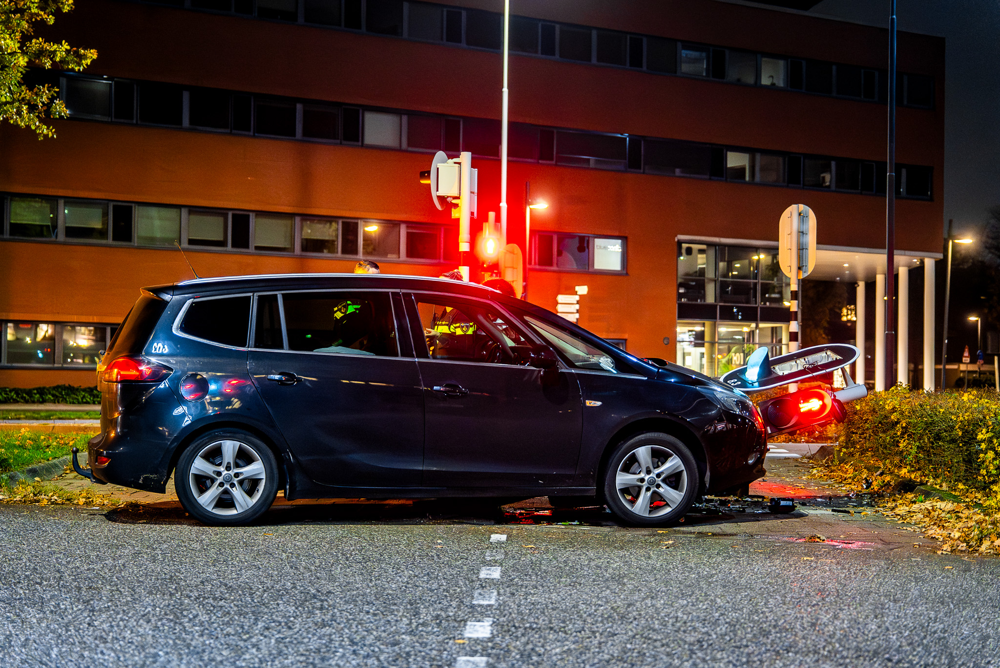 Het verkeerslicht werd door de klap omvergereden en het voertuig raakte flink beschadigd. De oorzaak van het ongeval wordt onderzocht.