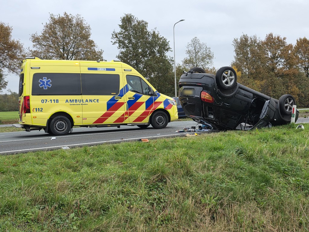 Automobilist slaat over de kop en raakt gewond