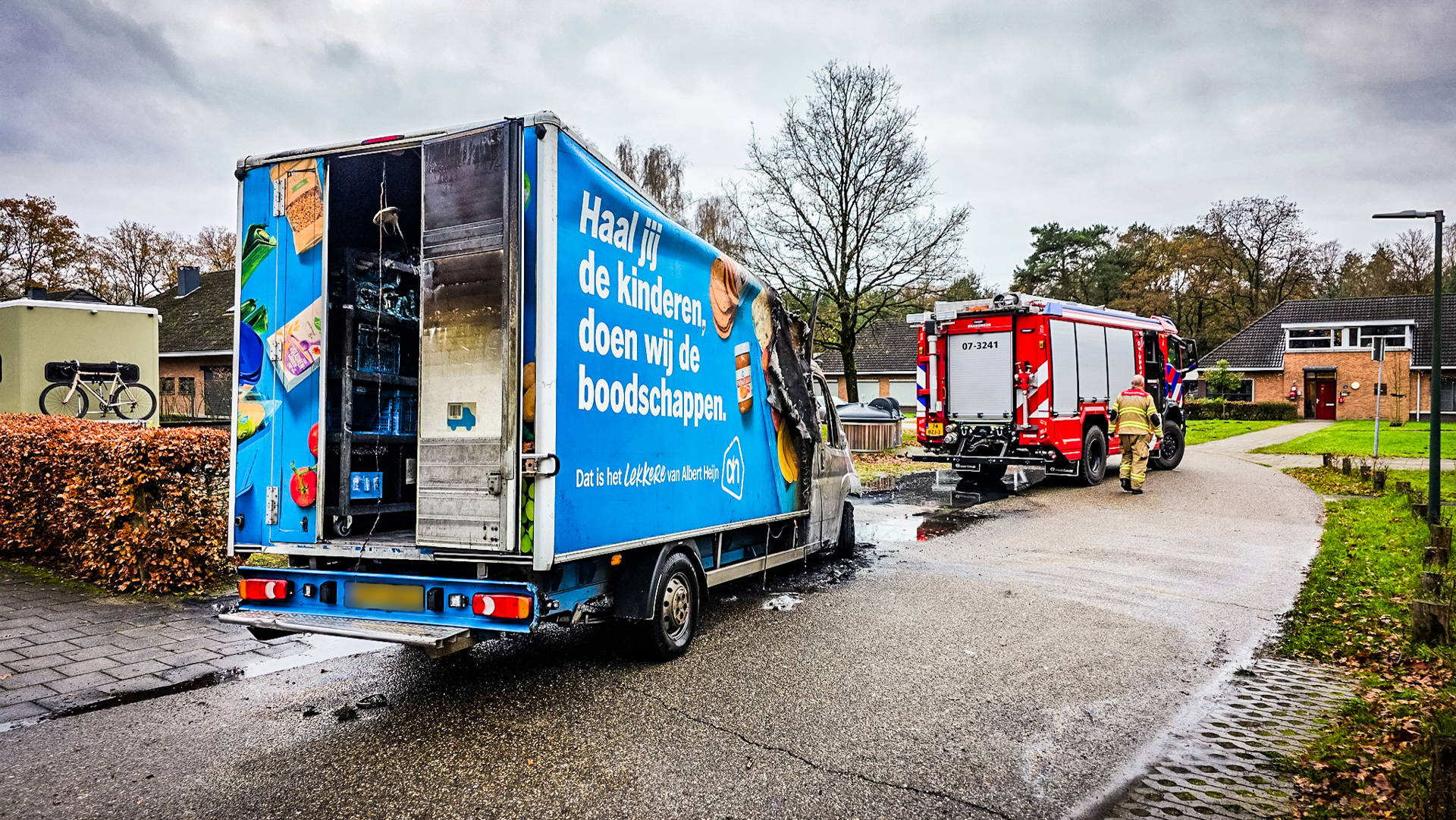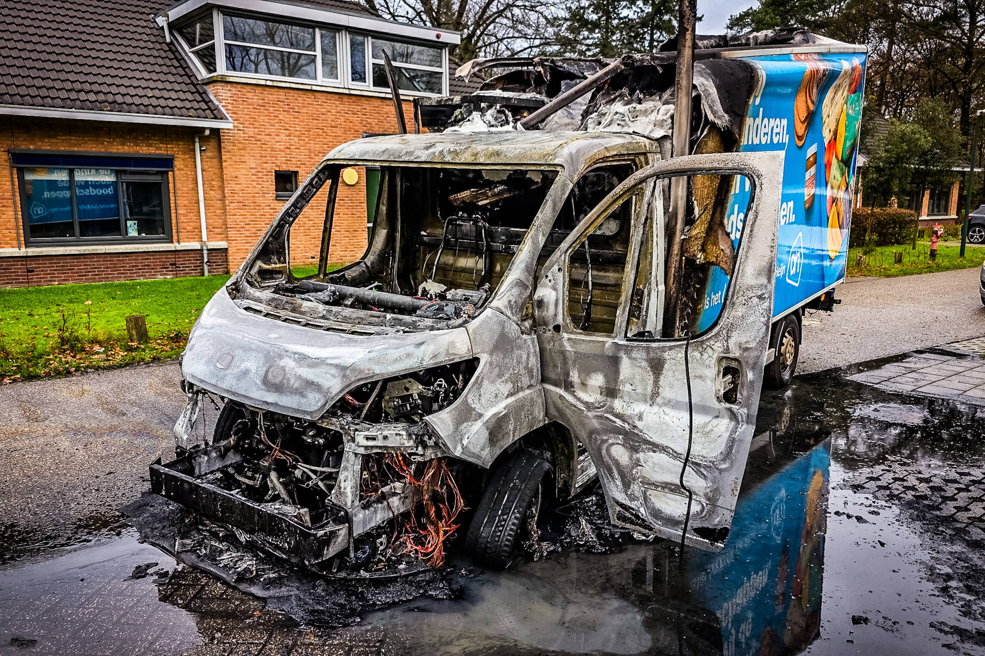 ARNHEM – Zaterdagochtend rond 08.50 uur is een bakwagen van bezorgdienst Albert Heijn volledig uitgebrand op het terrein van Siza aan de Hartenkoning.