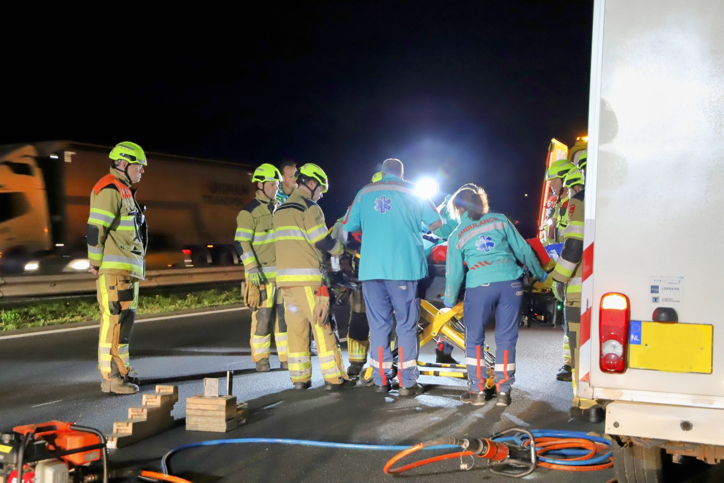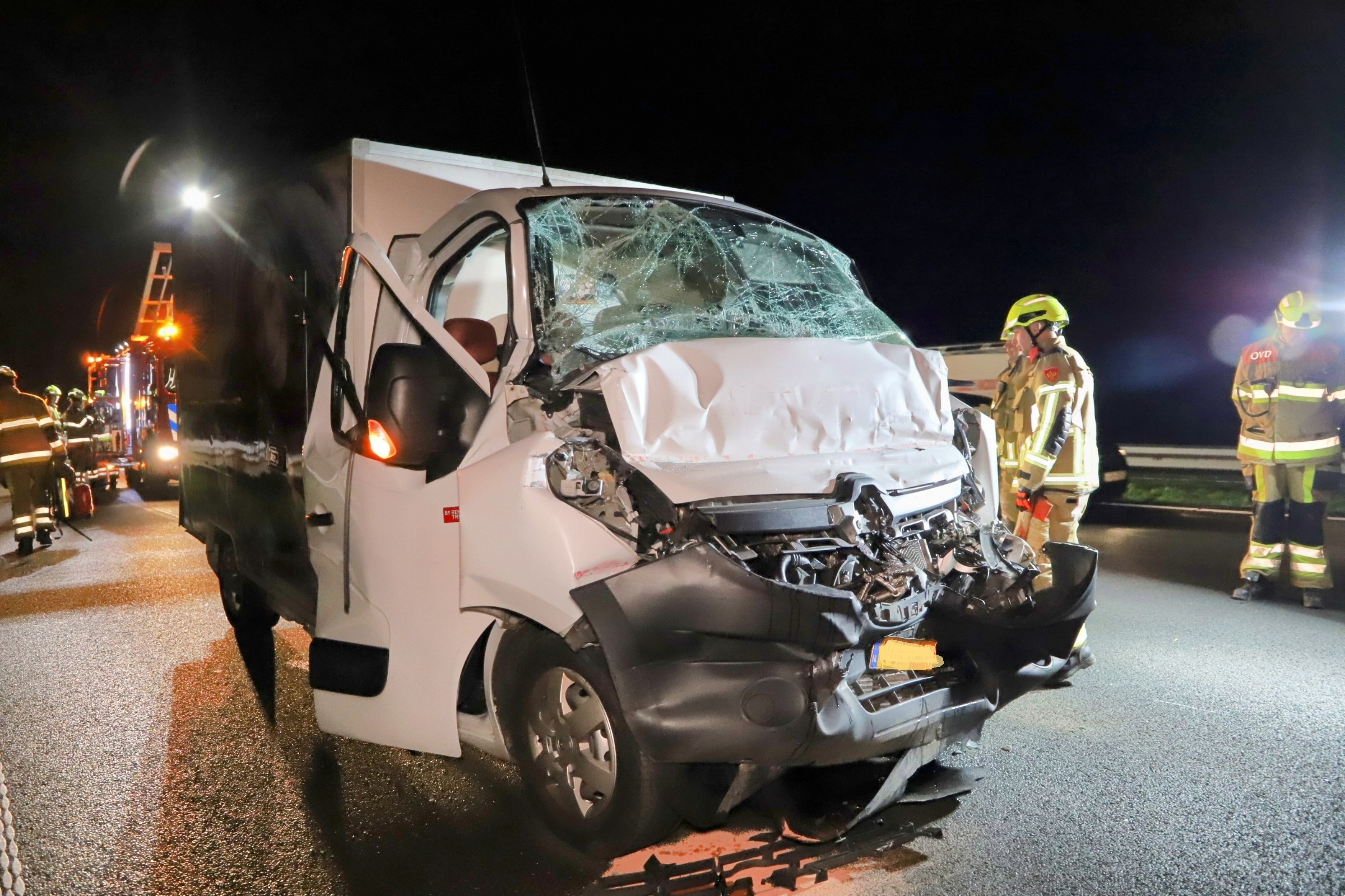 De bestuurder van de bestelauto raakte bekneld en moest door de brandweer worden bevrijd. Hij is met spoed overgebracht naar het ziekenhuis. Een traumahelikopter die was opgeroepen, is uiteindelijk niet ingezet.