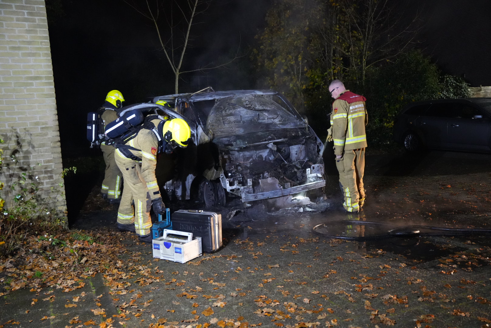 Brandstichting wordt niet uitgesloten. De politie onderzoekt het incident en bekijkt camerabeelden uit de omgeving.