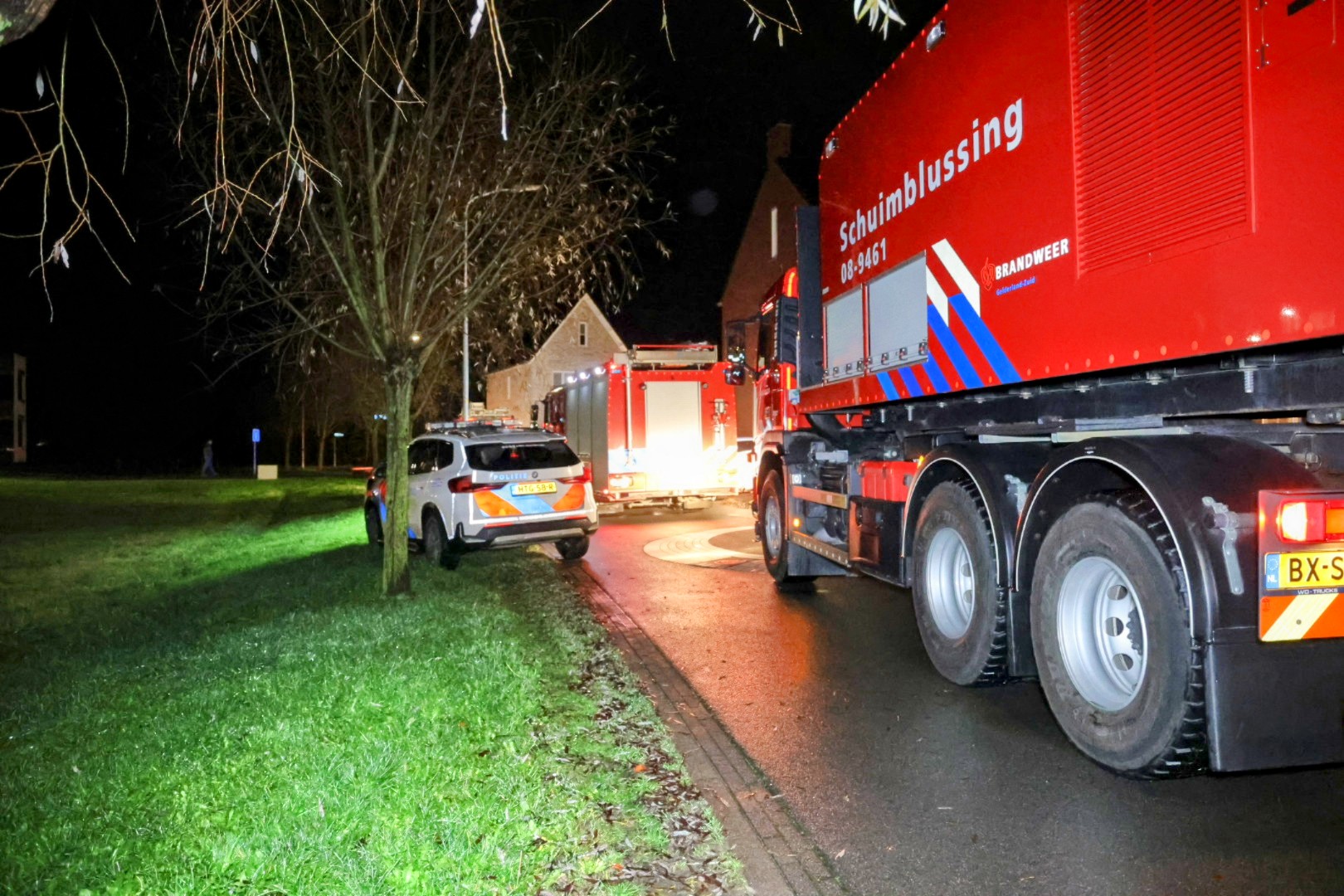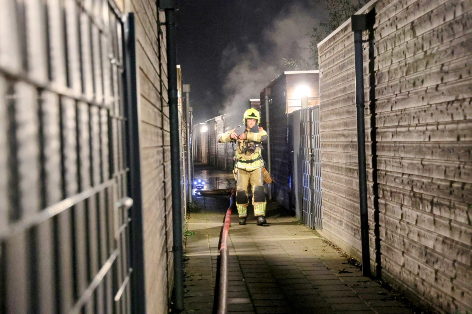 Bij aankomst trof de brandweer een houten schuur achter een woning aan die in lichterlaaie stond. Er werd opgeschaald naar middelbrand en een waterwagen werd ingezet om voldoende bluswater te kunnen leveren.