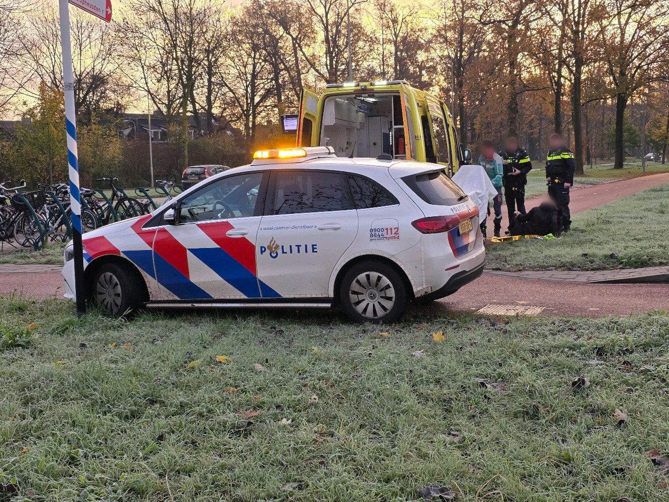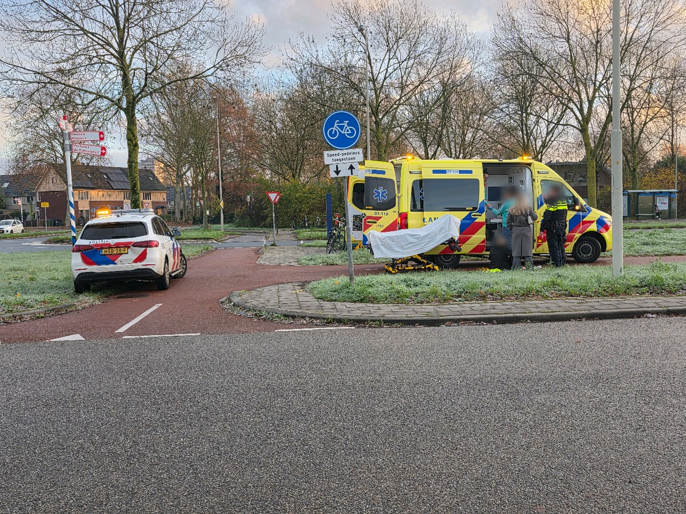 De fietsster gleed onderuit door een spekglad wegdek. Ze kwam ongelukkig terecht en raakte daarbij gewond. Hulpdiensten kwamen ter plaatse, waarna de vrouw is nagekeken in een ambulance.
