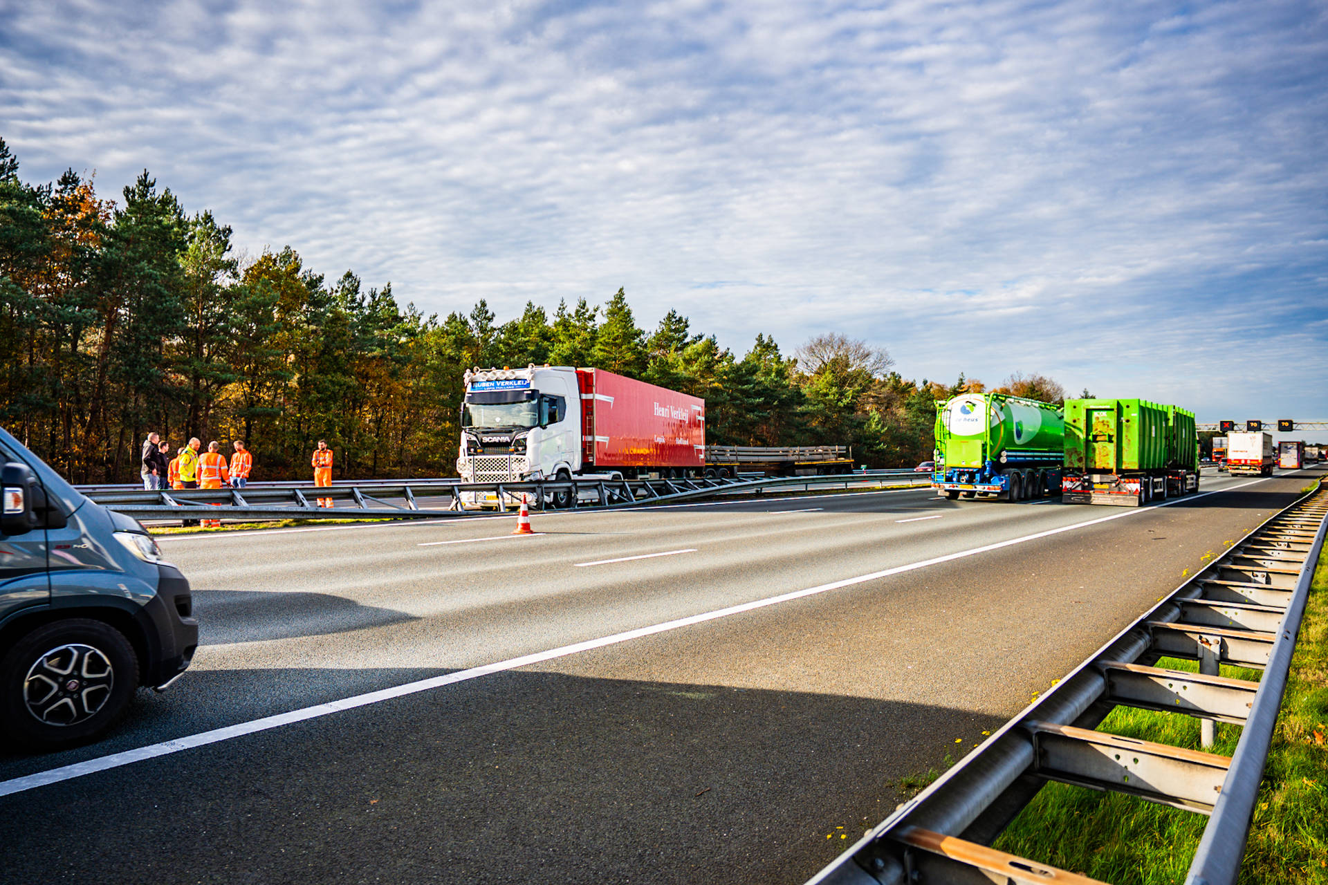 De vrachtwagen raakte door nog onbekende oorzaak van de rijbaan en kwam in botsing met de middenrail. Over de toestand van de chauffeur is niets bekendgemaakt. De vrachtwagen en de vangrail liepen beide schade op door de aanrijding.