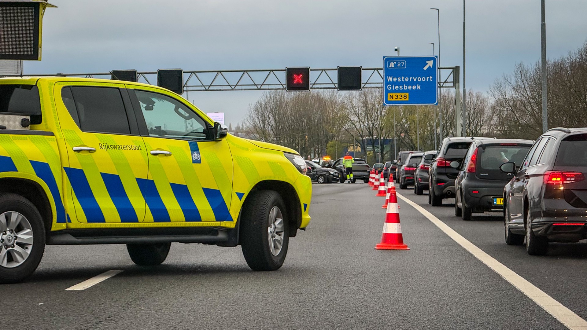 Meerdere voertuigen botsen op snelweg-parallelbaan, rijbaan afgesloten