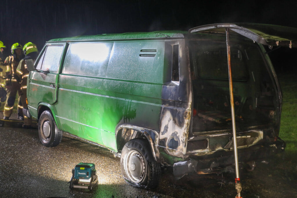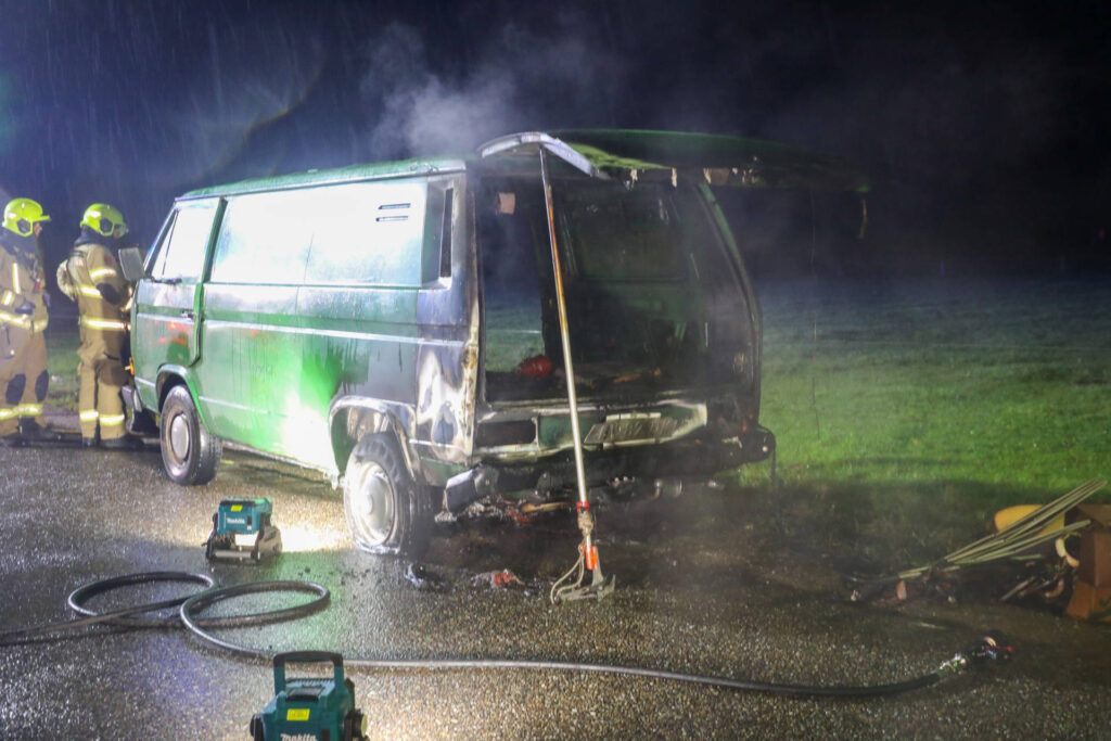 Oude Volkswagen Transporter vat vlam door kortsluiting