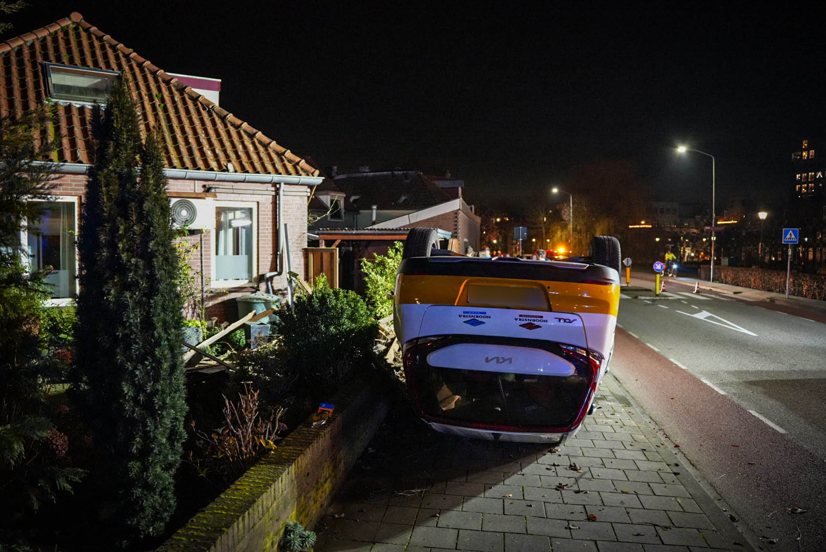 Kort na 18:30 uur avonds kwam er een melding van een ongeluk binnen bij de meldkamer. Hierop werden meerdere brandweerauto’s, de politie en een ambulance opgeroepen. Ter plaatse bleek dat een automobilist om onbekende redenen de controle over het stuur was verloren. De auto botste tegen een tuinmuur en kwam uiteindelijk op zijn kop tot stilstand. De stenen van de muur vlogen in het rond en beschadigden ook de glazen deur van een leegstaand huis.