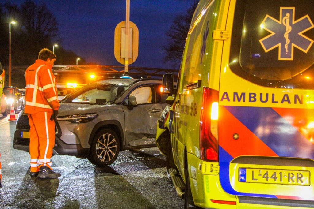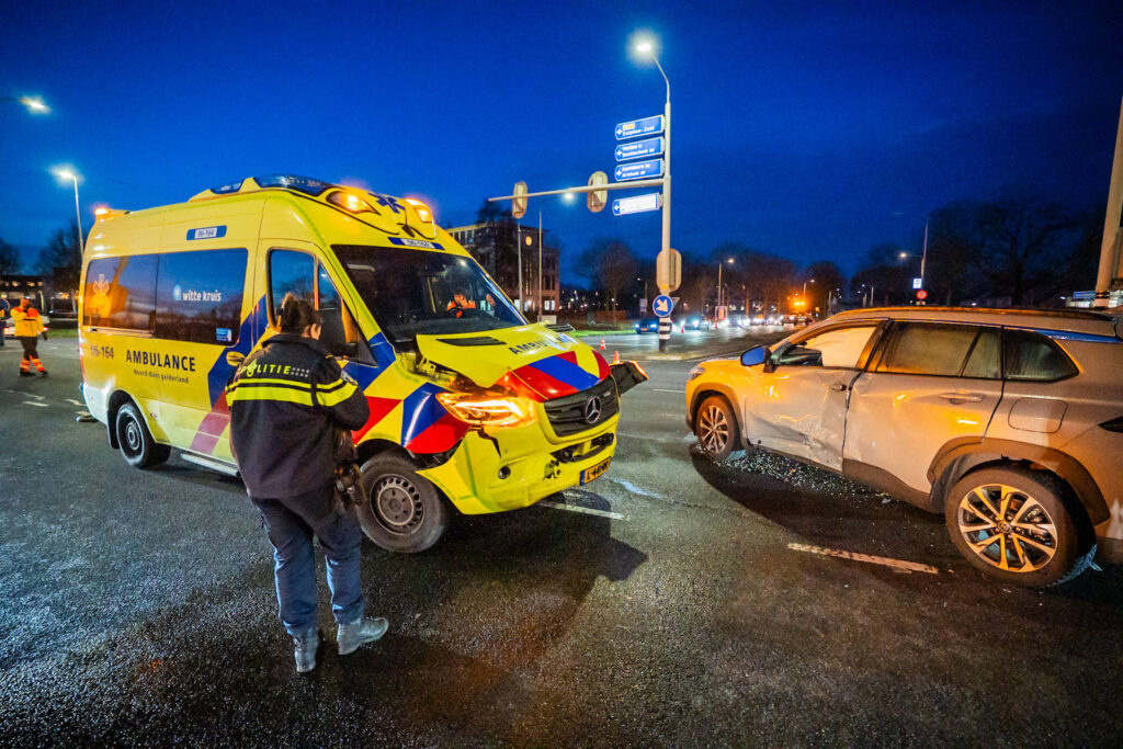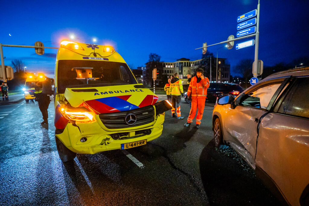 Ambulance botst met personenauto op kruising, automobilist naar ziekenhuis
