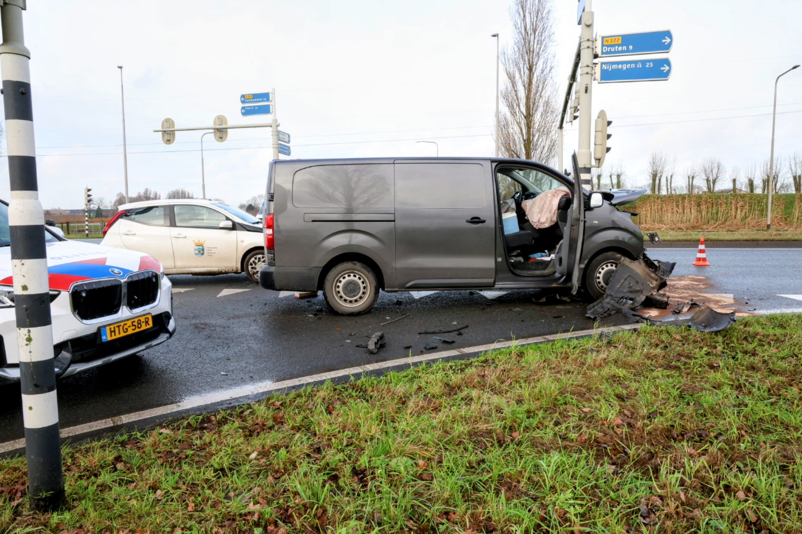 Bedrijfsbusje en vrachtwagen botsen op kruispunt