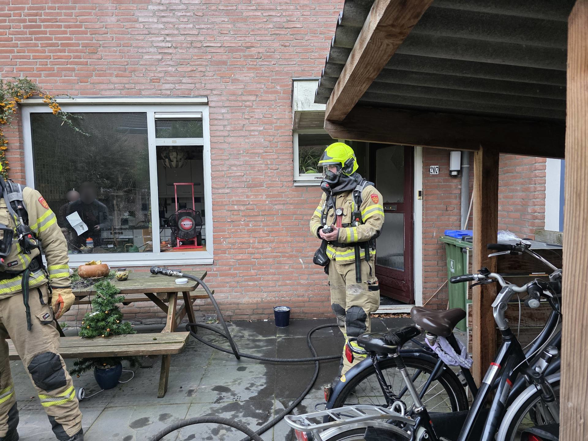 Op de keukentafel was een brand ontstaan in een kerststuk, wat snel vlam vatte. De brandweer kon het vuur snel onder controle krijgen, waardoor de schade beperkt bleef. Er bevond zich een bewoner boven in een kamer, die herstellende was van een operatie. Hij werd door de brandweer met een vluchtmasker uit de woning gehaald en in veiligheid gebracht.