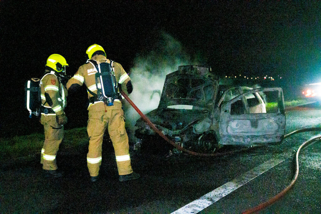DUIVEN – In de nacht van dinsdag op woensdag is een auto volledig uitgebrand op de A12 richting Zevenaar. De brand werd rond 00.45 uur gemeld, waarna de hulpdiensten snel ter plaatse kwamen.