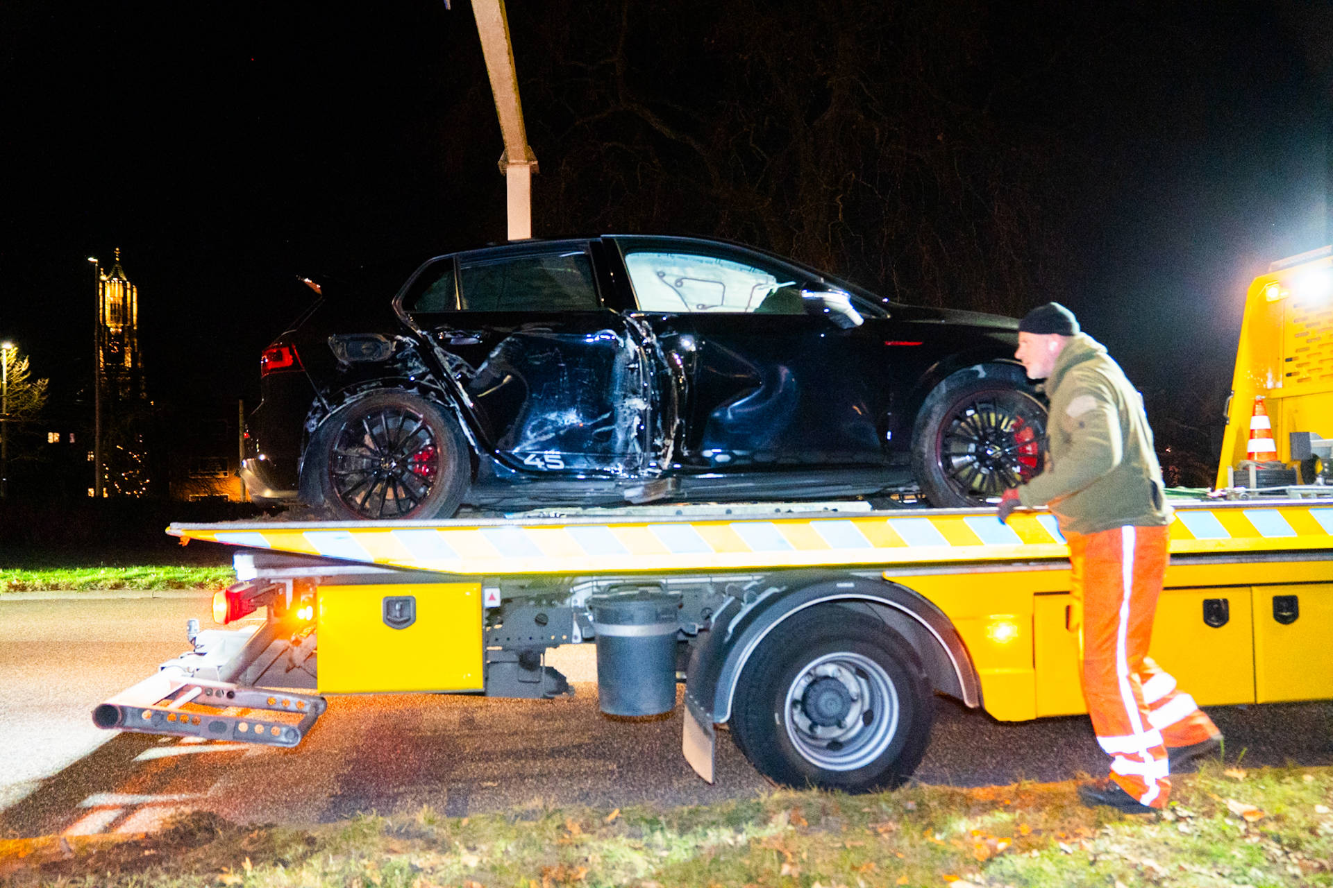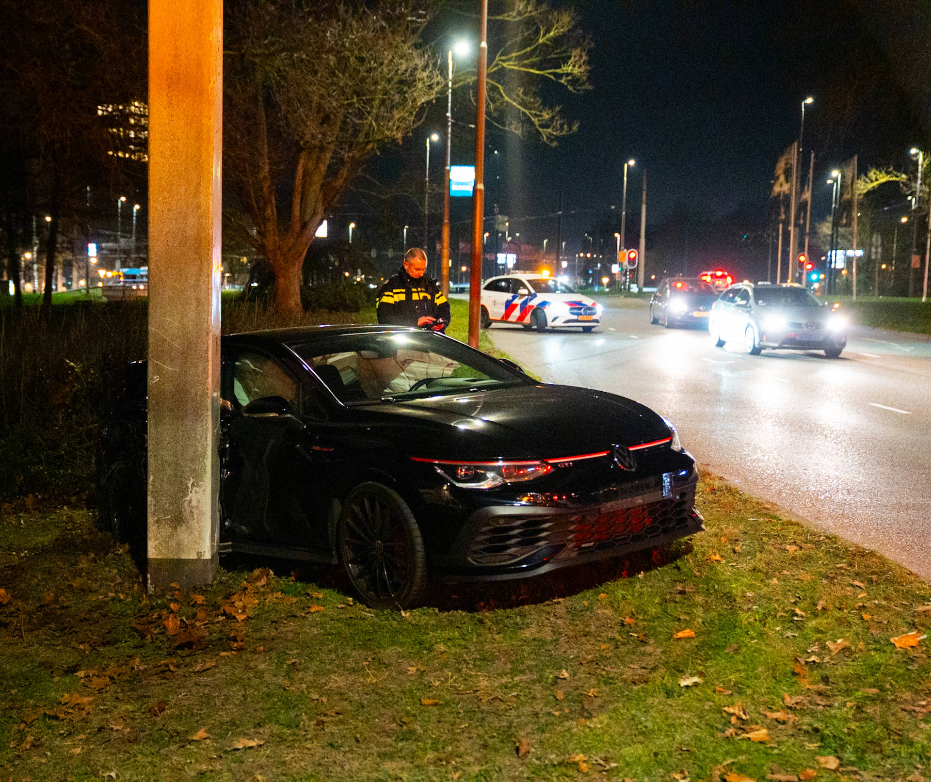 Het ongeval gebeurde rond 20:20 uur op eerste kerstavond. Een auto botste tegen een paal van een verkeersbord. Politie en twee ambulances kwamen met spoed ter plaatse. Volgens de politie was er geen sprake van alcoholgebruik door de bestuurder. Beide inzittenden van het voertuig zijn per ambulance naar het ziekenhuis overgebracht.