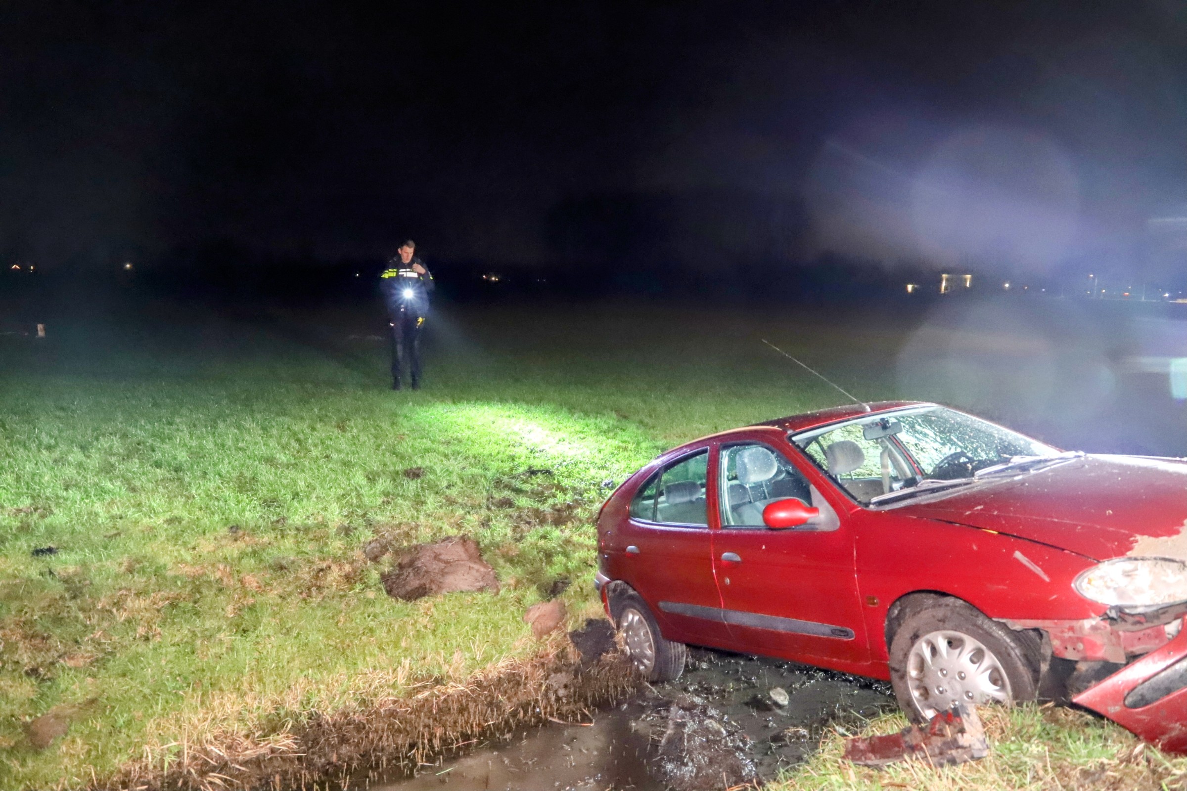 Auto belandt in de sloot, inzittenden proberen vuurwerk te verstoppen