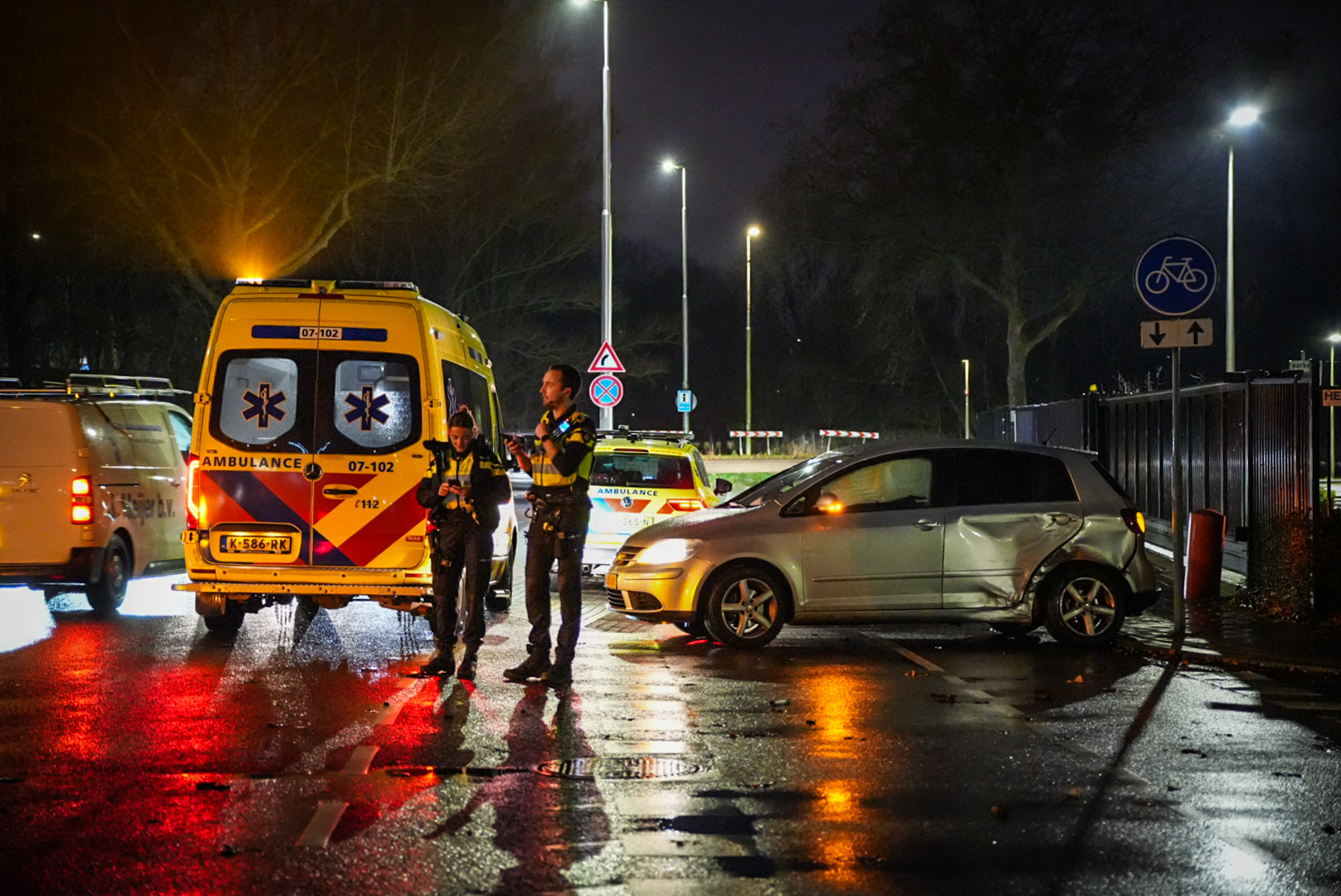 De melding kwam kort na 17.15 uur binnen, waarna meerdere politie-eenheden en twee ambulances werden opgeroepen. Door de klap draaide de personenauto rond en kwam tot stilstand op het fietspad aan de overzijde van de weg. Beide voertuigen raakten zwaar beschadigd en zijn door een bergingsbedrijf afgevoerd.