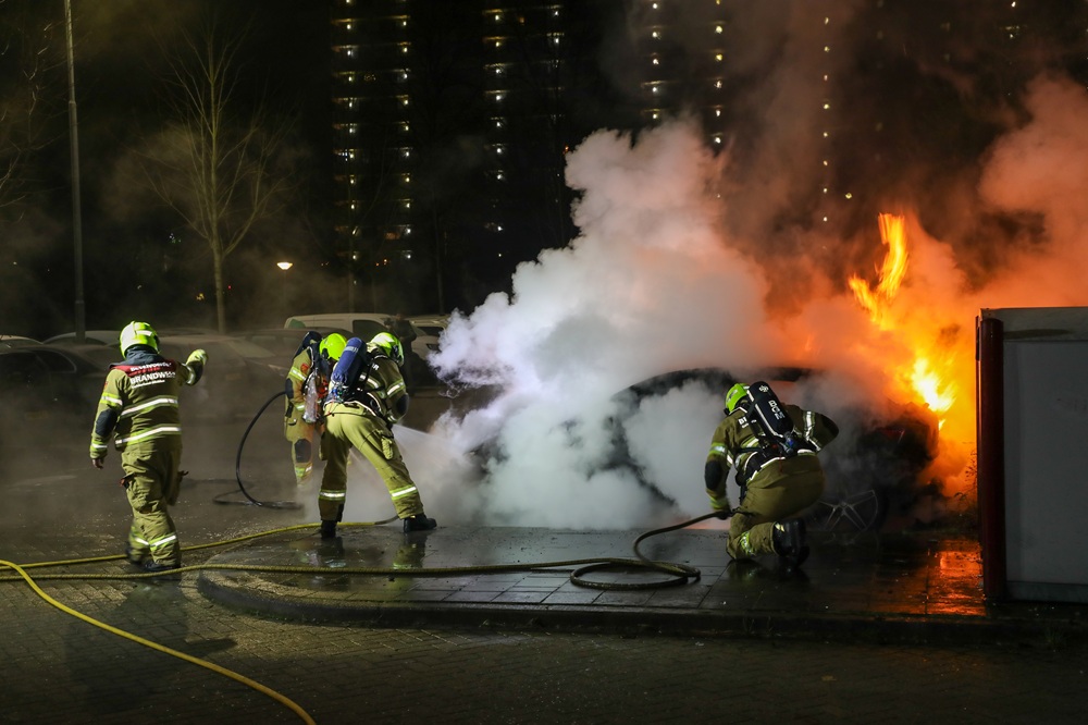 EDE – Aan de Van der Hagenstraat in Ede heeft op oudejaarsdag rond 03.20 uur een auto in brand gestaan op de parkeerplaats bij de flat De Elskamp. De vlammen sloegen hoog uit het voertuig, dat volledig uitbrandde.