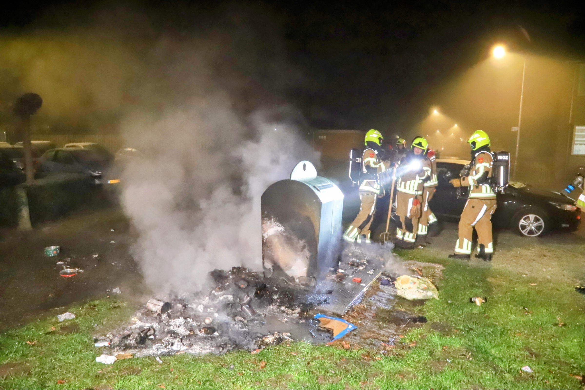 De brandweer heeft de brand geblust door de container vol te laten lopen met water.