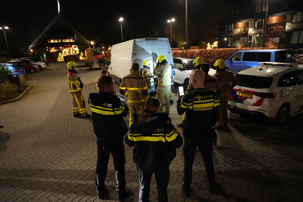 APELDOORN – In de nacht van donderdag op vrijdag is de brandweer opgeroepen om de politie te assisteren bij een melding aan de Van Golsteinlaan in Apeldoorn. Op de parkeerplaats van hotel Van der Valk stond een busje geparkeerd waar opvallende geluiden uit kwamen.