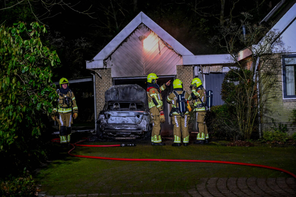 Auto brandt uit op oprit, woning en garage beschadigd