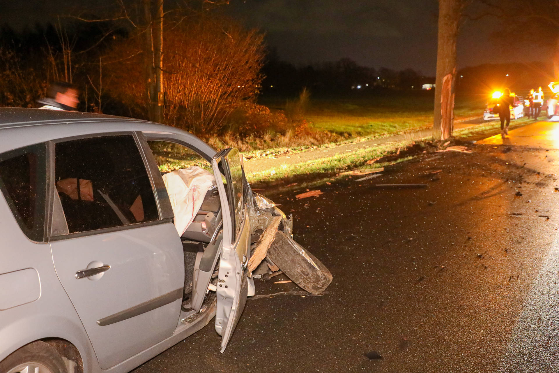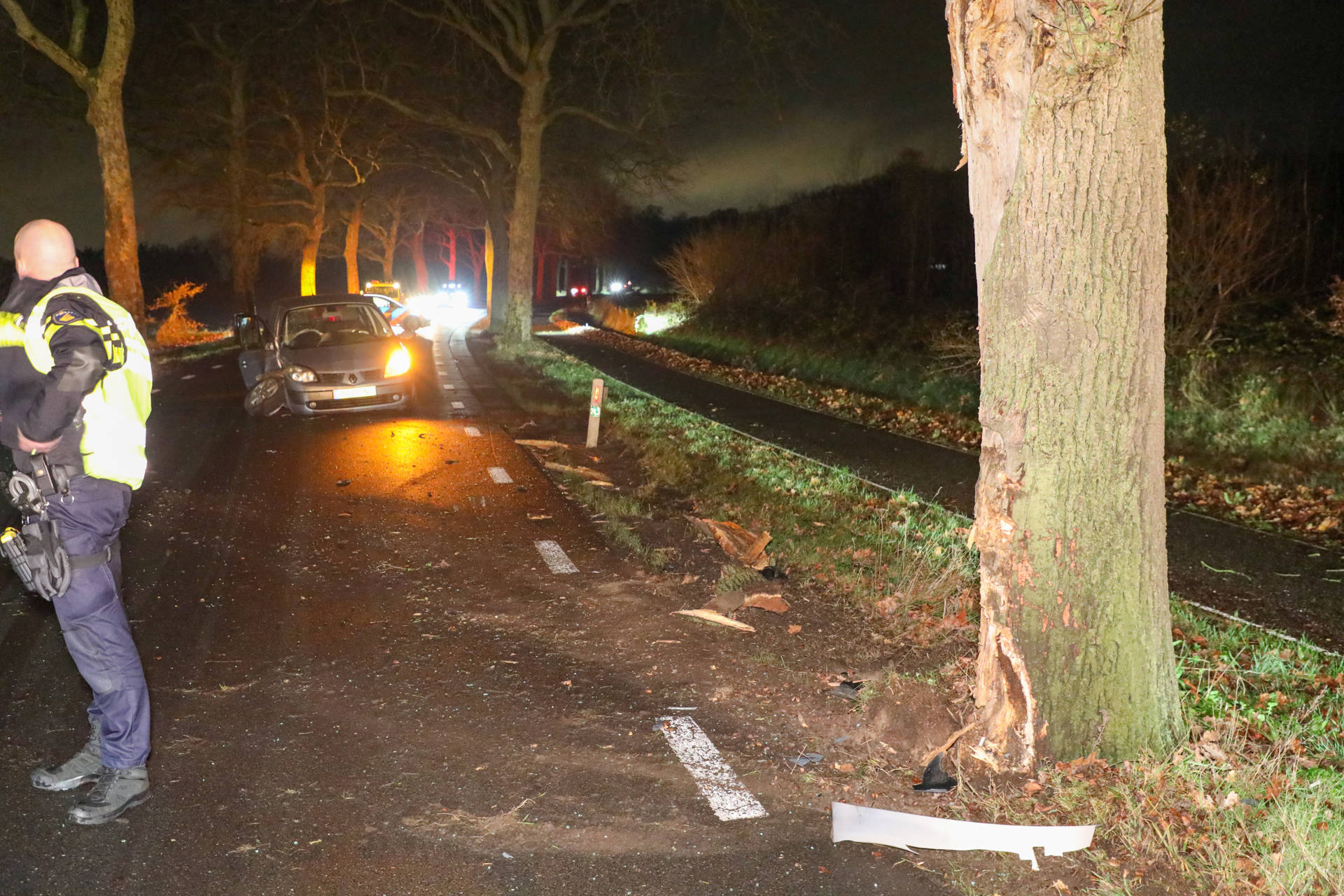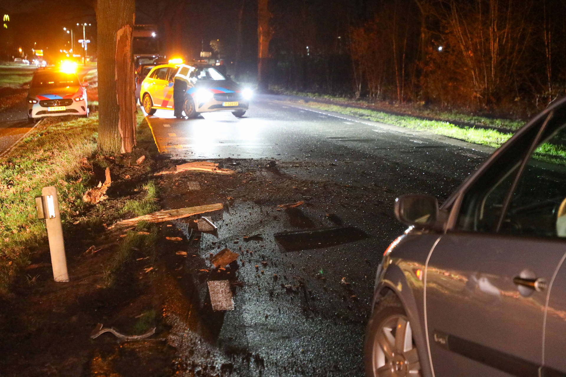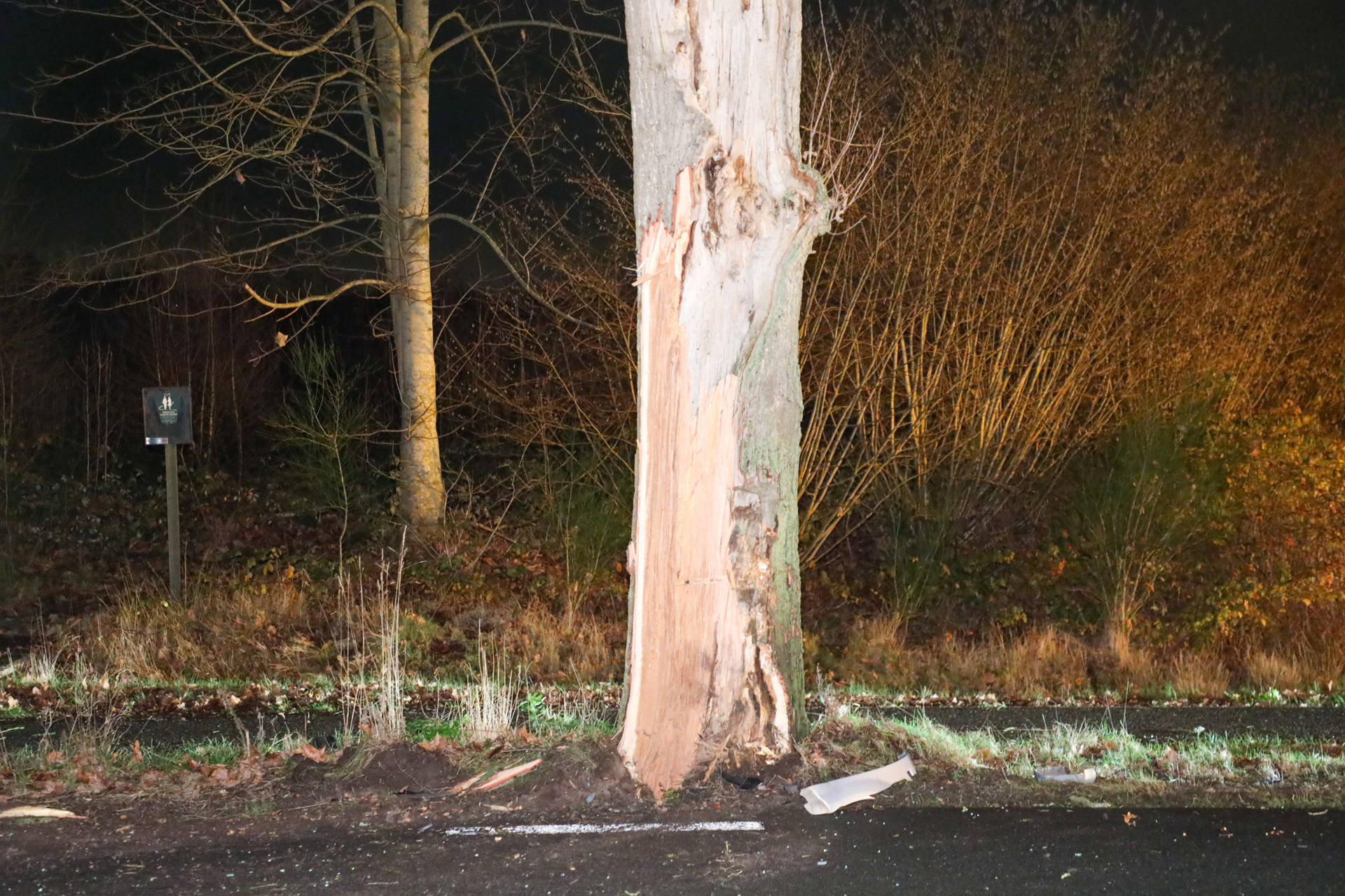 Een jonge vrouw verloor de controle over haar voertuig en reed met hoge snelheid tegen een boom. De auto kwam midden op de rijbaan tot stilstand. Ambulancepersoneel controleerde de bestuurster, die slechts lichtgewond bleek en niet mee hoefde naar het ziekenhuis. De auto raakte zwaar beschadigd; stukken boomschors zaten vast in het interieur van het voertuig.