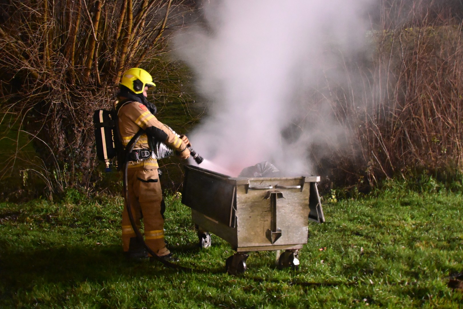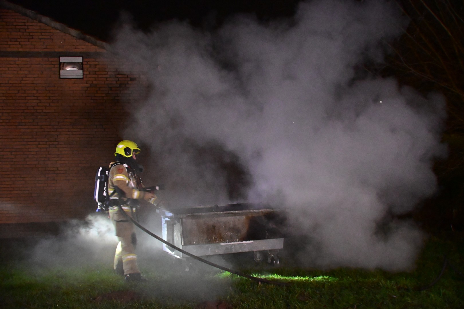 Voorbijgangers ontdekten de brand en schakelden direct de hulpdiensten in. De container stond tegen het clubgebouw van Schuttergilde “Excelsior” en kon door snel optreden van de brandweer tijdig worden weggehaald. Vervolgens is de container opengeknipt en afgeblust.
