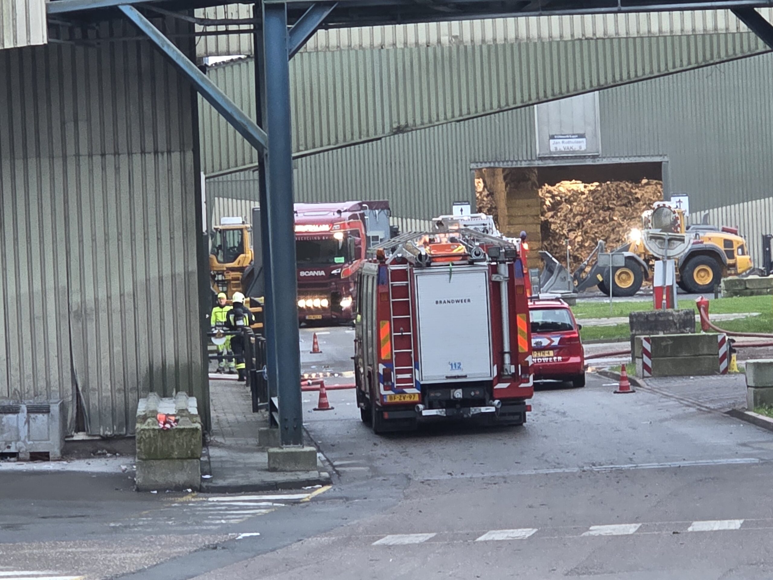 Vanaf de weg was te zien dat er veel rook in de hal hing. De brandweer kwam met twee tankautospuiten ter plaatse om het vuur te bestrijden. Voor zover bekend zijn er bij de brand geen gewonden gevallen.