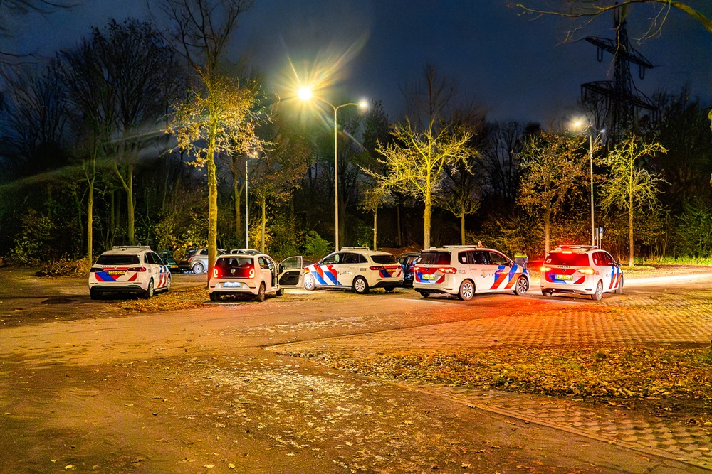 De melding kwam rond 23.15 uur binnen, waarna meerdere politie-eenheden, waaronder noodhulp en hondengeleiders, ter plaatse kwamen. Het is nog niet bevestigd of er iemand gewond is geraakt.