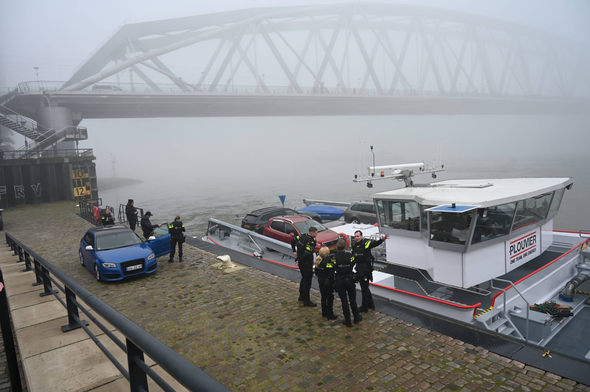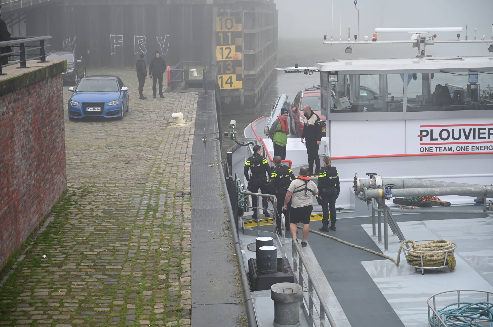 Rond het middaguur verzamelden agenten zich bij het aangemeerde schip. Politie in zware vesten was te zien op zowel het dek als op de kade. Het schip werd volledig doorzocht door de aanwezige eenheden.