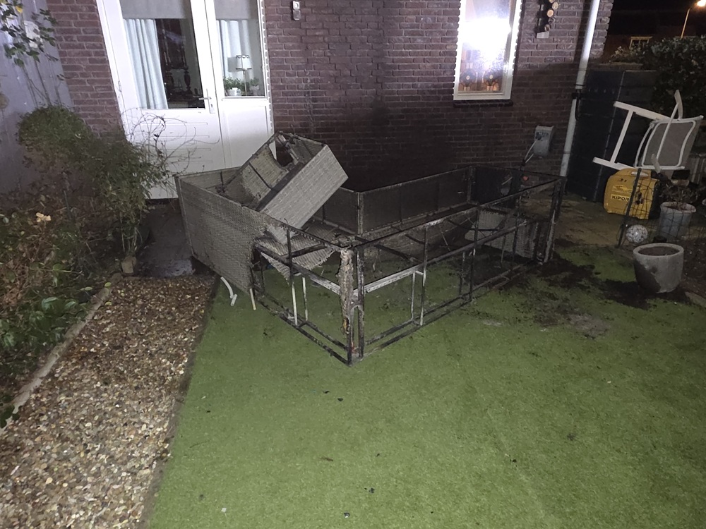 De bewoners hoorden een harde knal en zagen vervolgens vlammen. De brandweer werd met spoed ter plaatse gestuurd. Het vuur was snel onder controle, maar van het tuinstel bleef niets over.