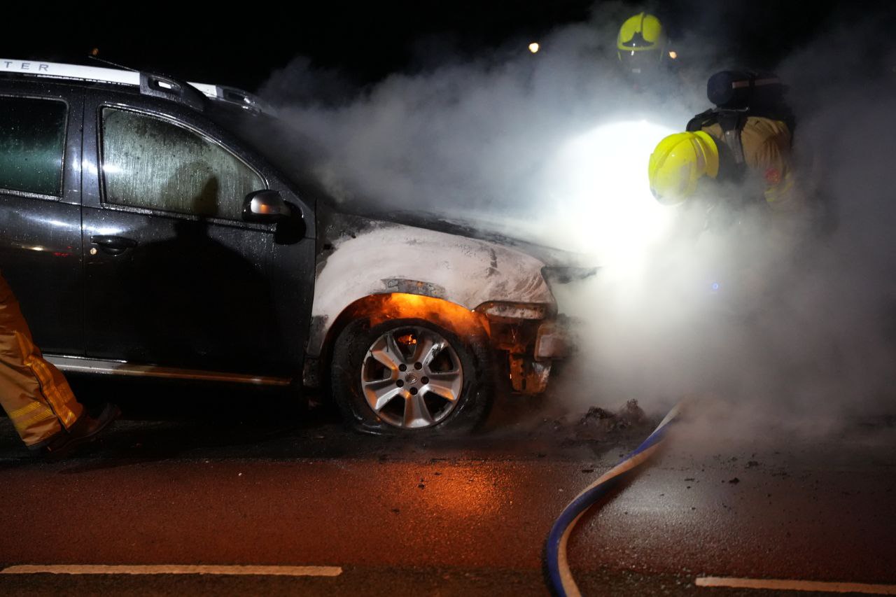 De brandweer was snel ter plaatse, maar kon niet voorkomen dat de voorkant van de auto volledig uitbrandde. Een tweede voertuig, dat direct voor de brandende auto geparkeerd stond, liep zware schade op aan de achterzijde.