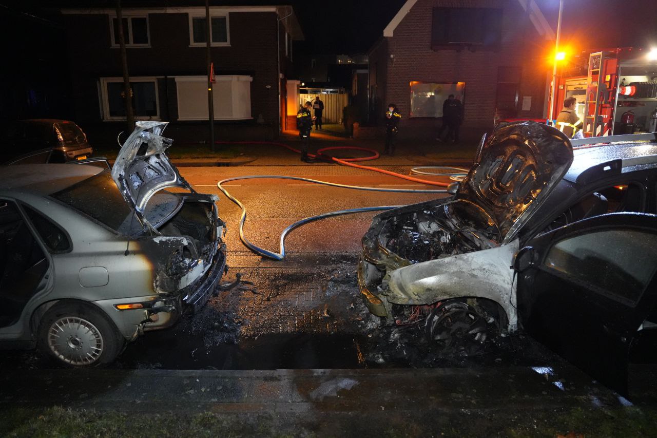Twee geparkeerde auto’s door brand verwoest