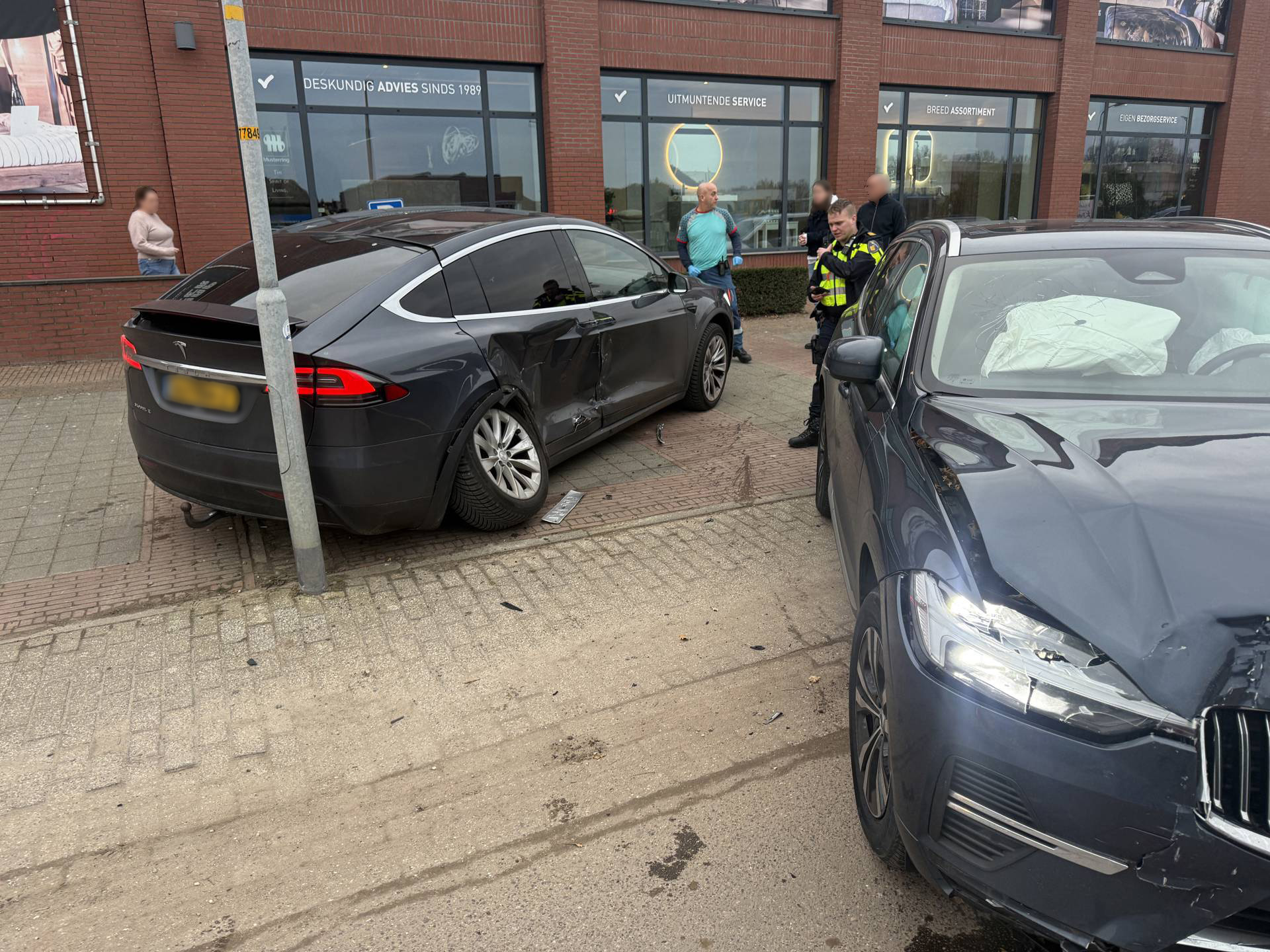 GROESBEEK – Dinsdagmiddag heeft op de Ambachtsweg in Groesbeek een verkeersongeval plaatsgevonden waarbij twee auto’s beschadigd raakten. Een Volvo sloeg tijdens het wegrijden op hol en botste tegen een geparkeerde Tesla.