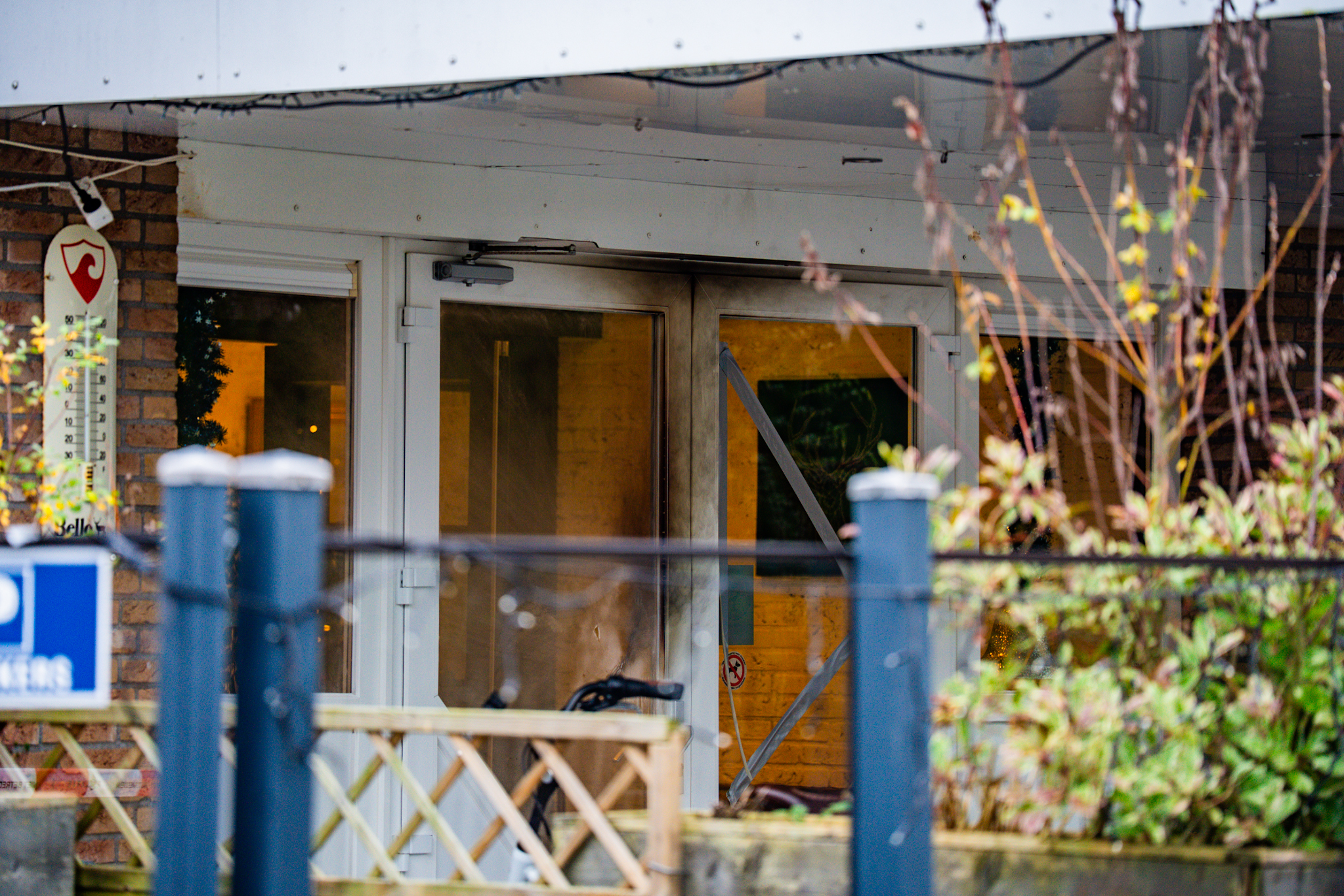 De man luisterde niet naar instructies, waarop waarschuwingsschoten zijn gelost. Hij is vervolgens aangehouden. Kort daarvoor was met een fles brandbare vloeistof op een deur van een nabijgelegen zaal gespoten. De deur raakte daarbij zwartgeblakerd.