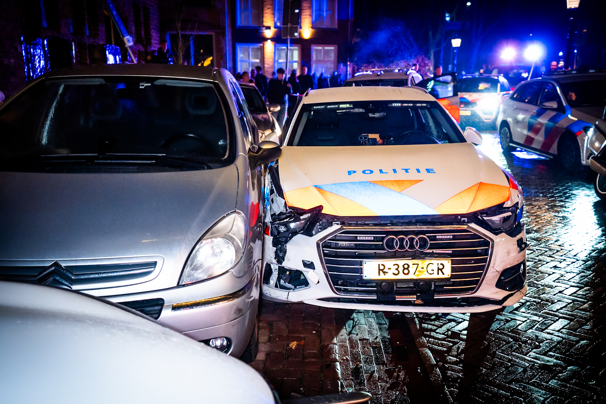 Meerdere geparkeerde auto’s raakten beschadigd, evenals de gevel van de woning. Zowel het voertuig van de verdachte als de politiewagen liepen forse schade op. De verdachte is na controle per politiewagen overgebracht naar het cellencomplex. De aanleiding voor de achtervolging is nog onbekend.