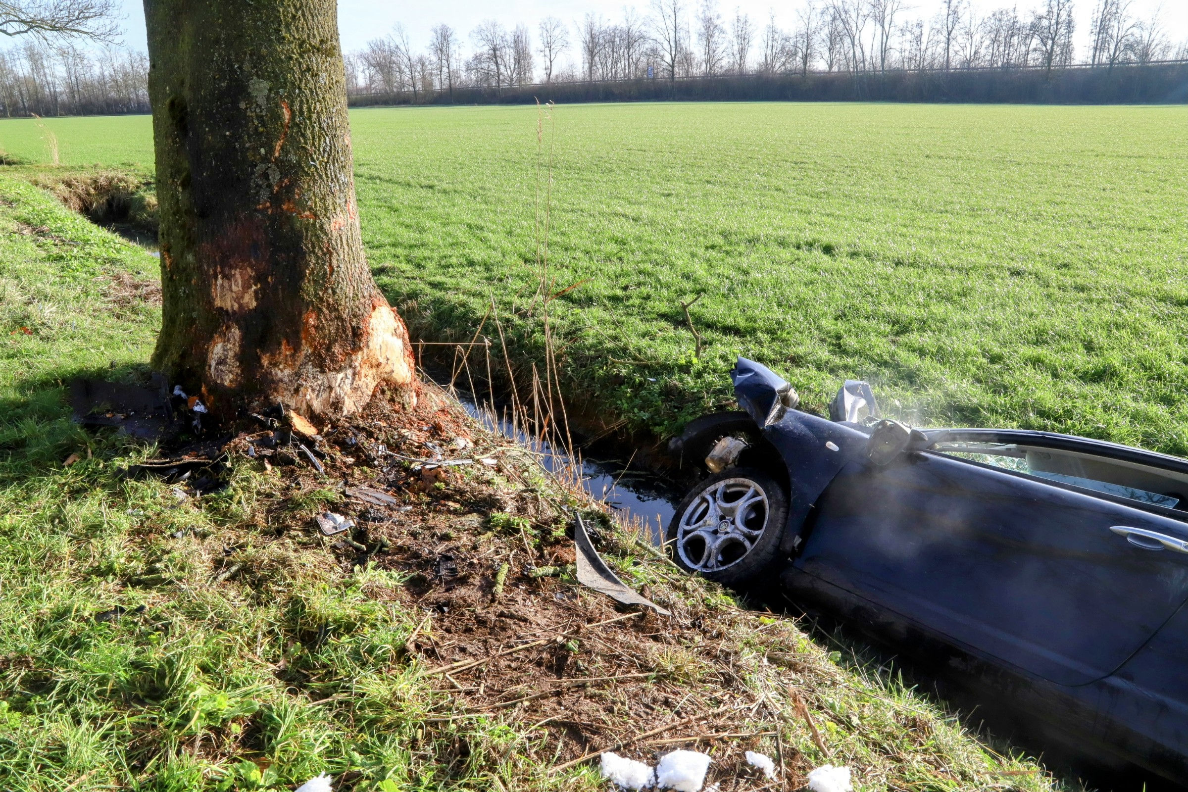 Automobiliste zwaargewond na botsing tegen boom