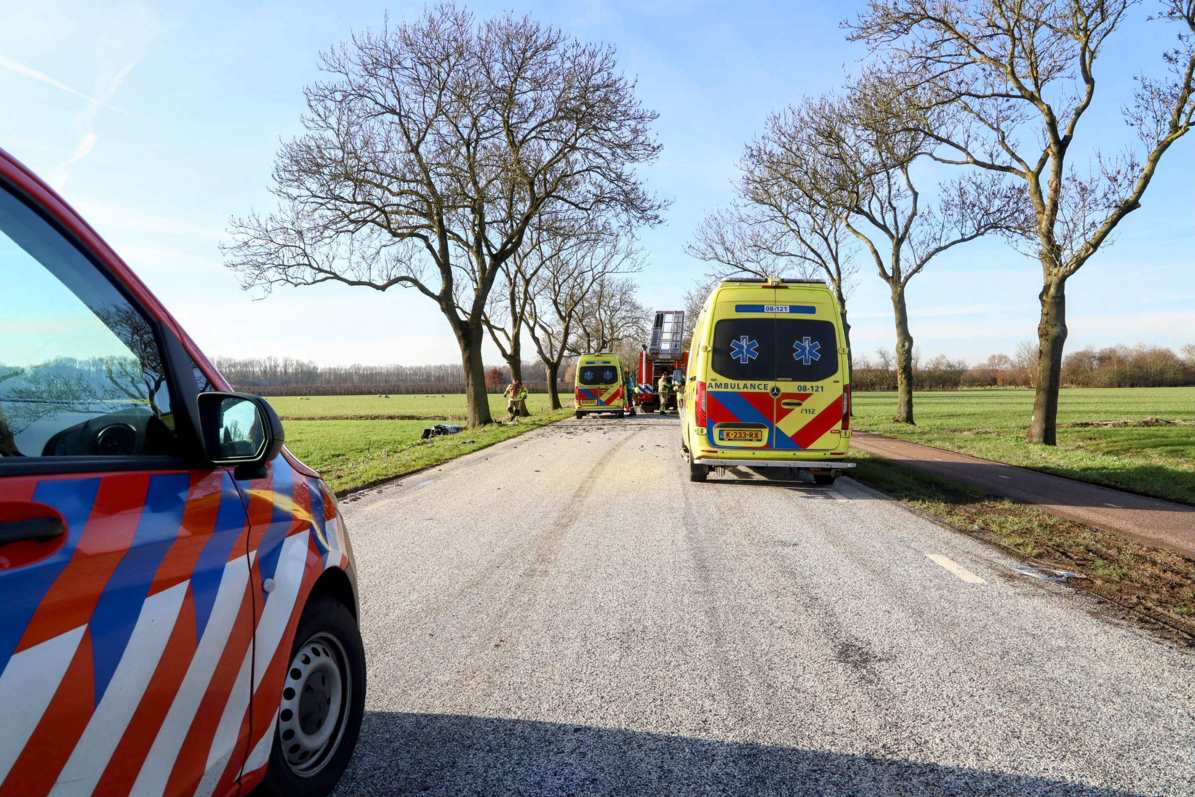 De weg is volledig afgesloten voor verkeer. Er wordt onderzoek gedaan naar de oorzaak van het ongeval.