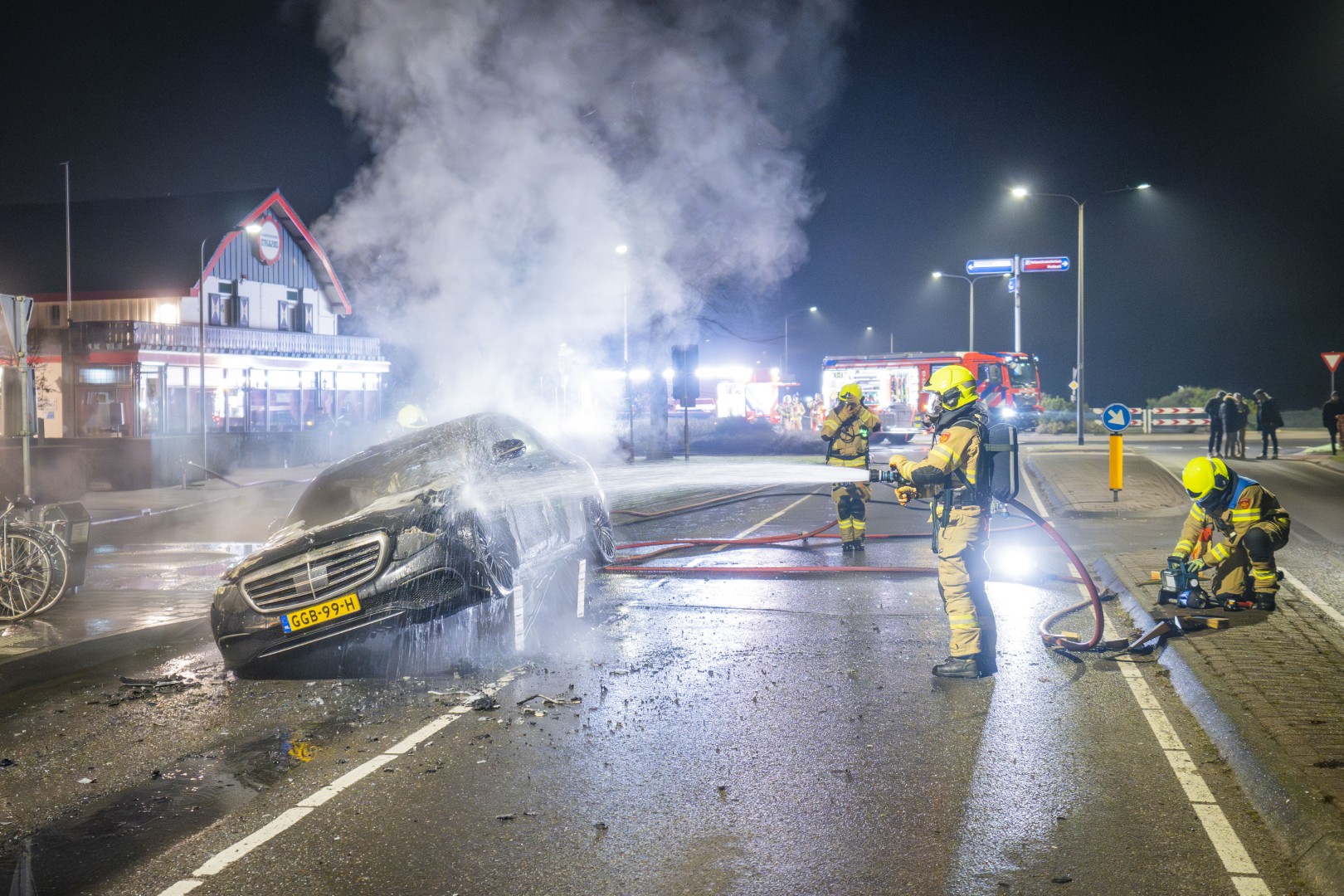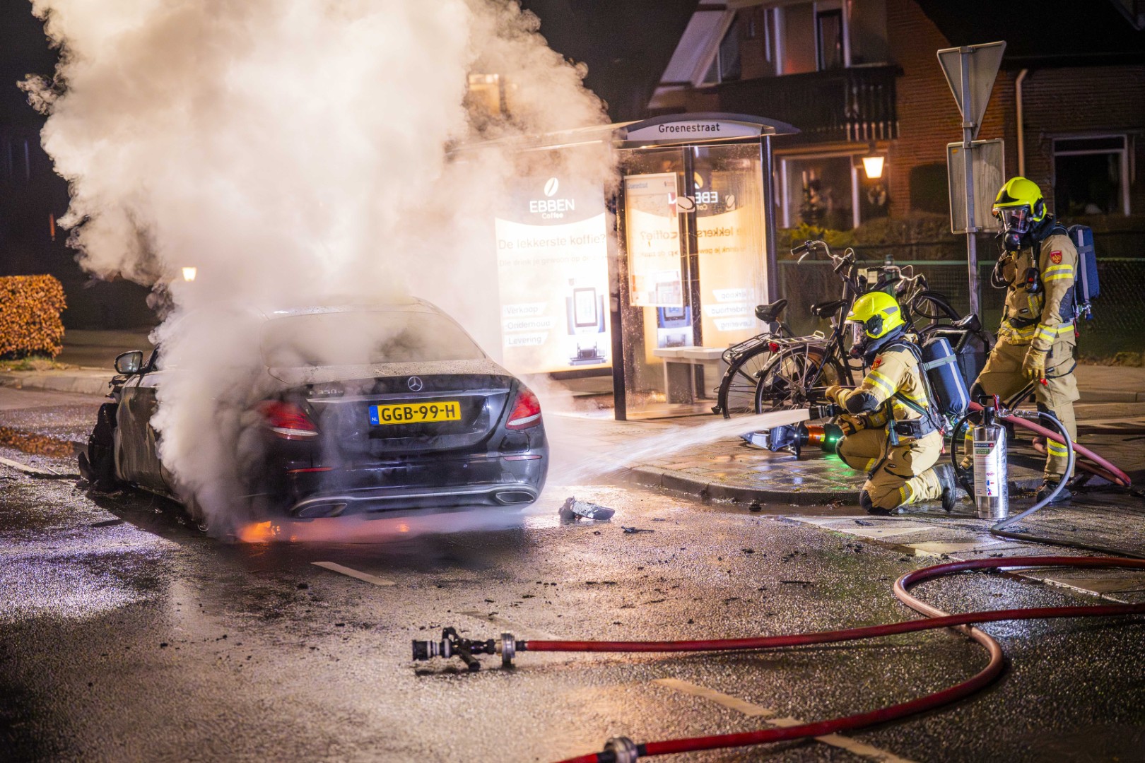 De brandweer werd gealarmeerd en bluste het vuur. Door een lekkende brandstoftank kostte het enige tijd om de vlammen volledig te doven. De auto stond bij aankomst van de hulpdiensten al volledig in brand.