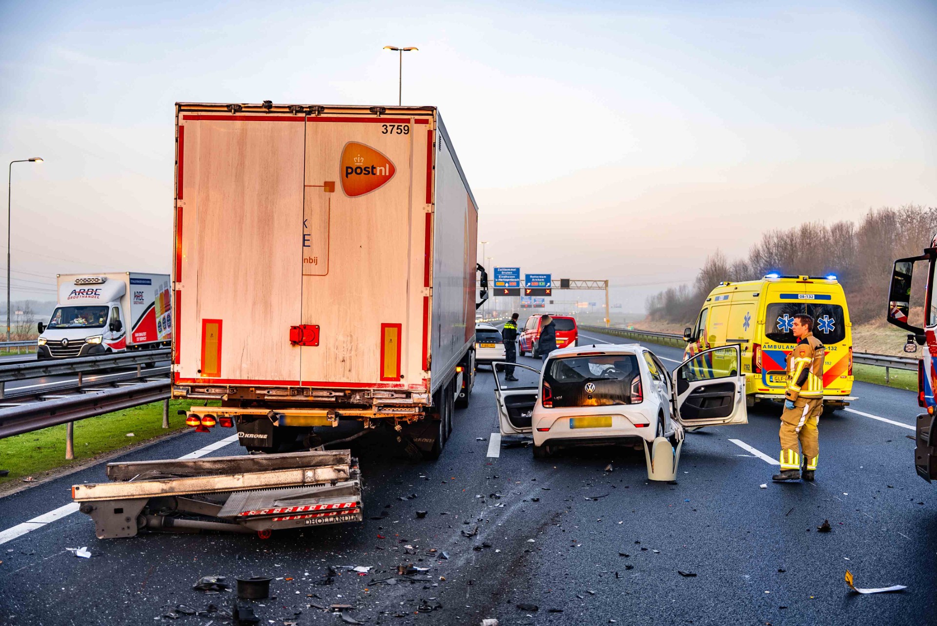 EWIJK – Op de A73 bij Ewijk heeft maandagochtend rond 08.30 uur een ernstig ongeval plaatsgevonden tussen een auto en een vrachtwagen.