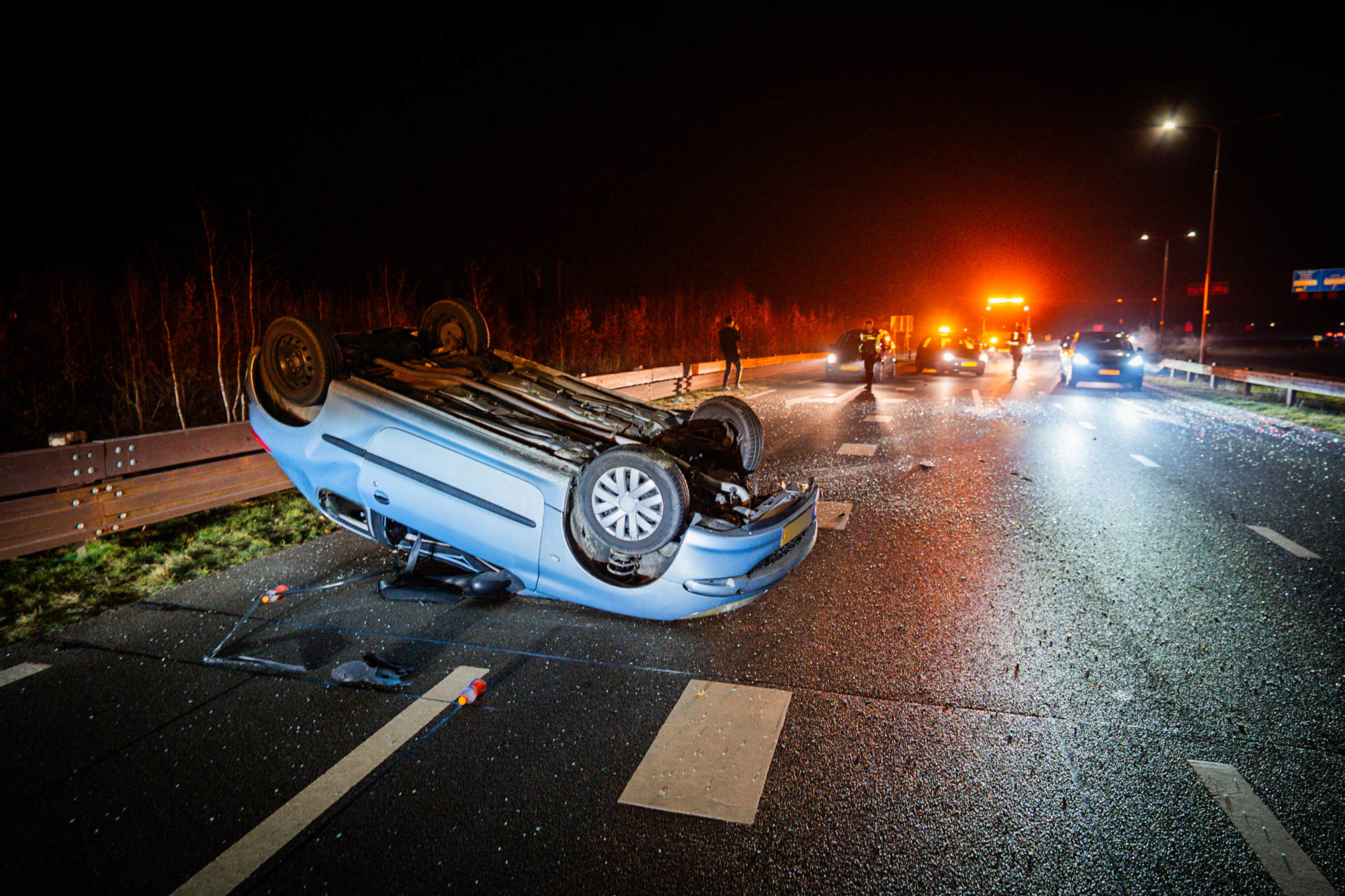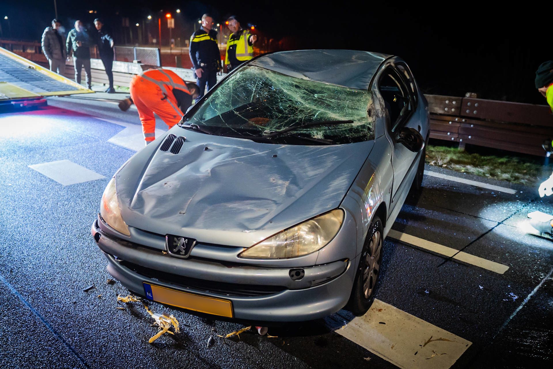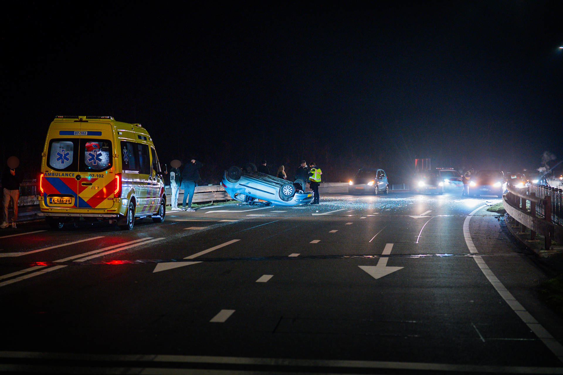De bestuurder raakte van de weg en reed over het begin van een houten vangrail. Hierdoor werd de auto gelanceerd, sloeg over de kop en kwam tot stilstand. De bestuurder raakte lichtgewond, maar hoefde niet mee naar het ziekenhuis.