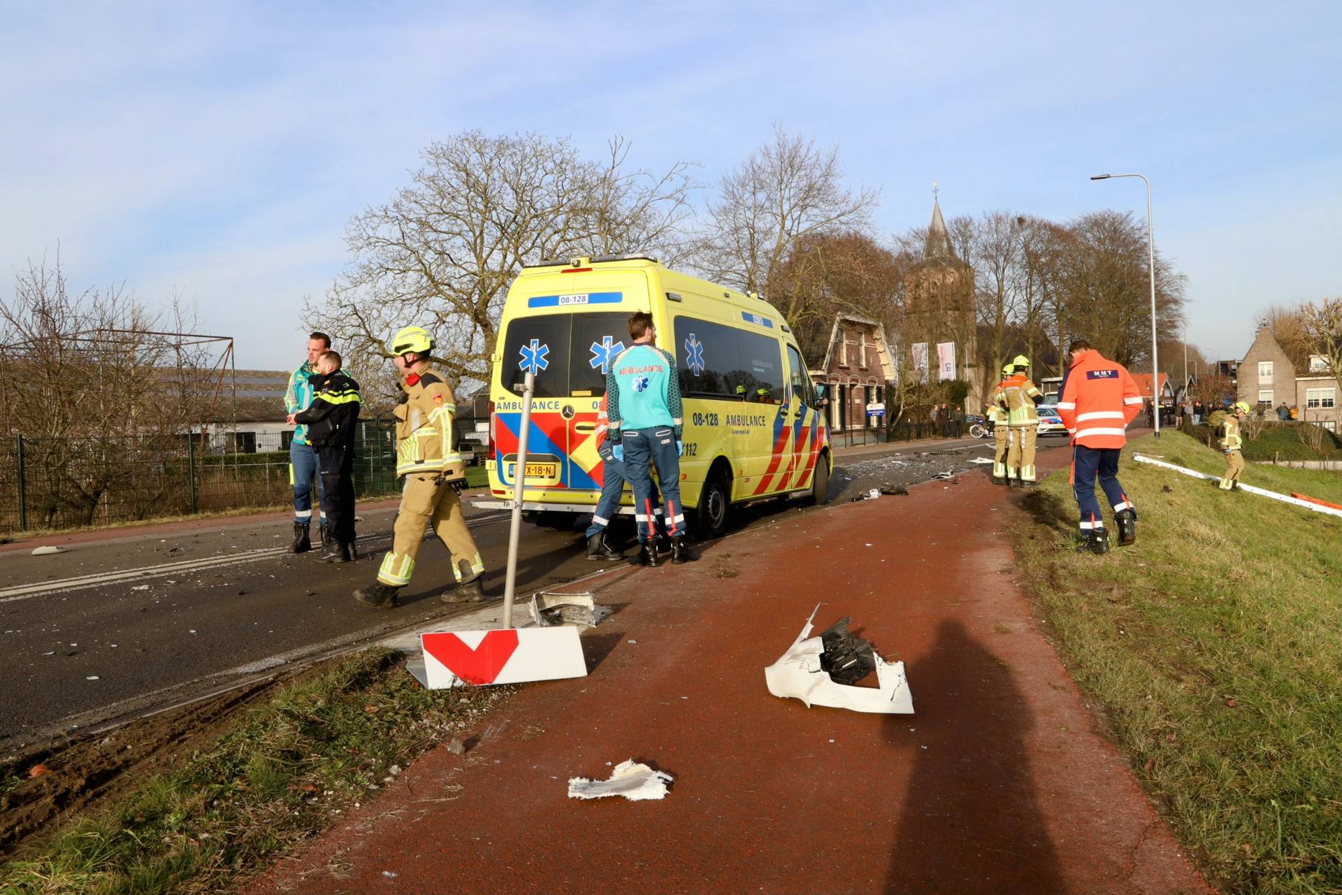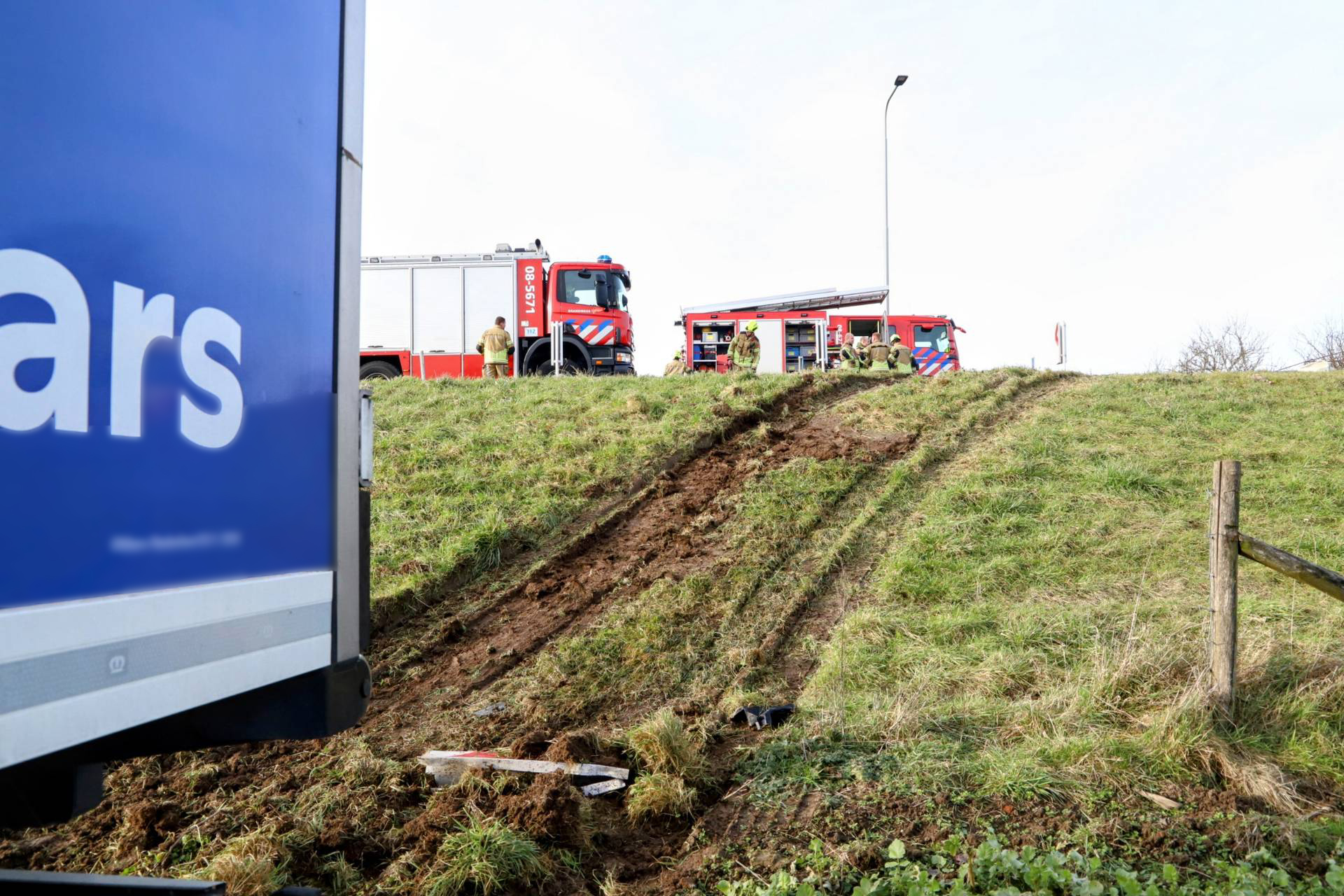 De personenauto kwam onderaan de dijk tot stilstand, terwijl de vrachtwagen in een weiland belandde. De bestuurder van de auto moest door de brandweer uit het voertuig worden bevrijd en is na behandeling in de ambulance met spoed naar het ziekenhuis vervoerd. Een traumahelikopter landde ter ondersteuning. De vrachtwagenchauffeur bleef ongedeerd.