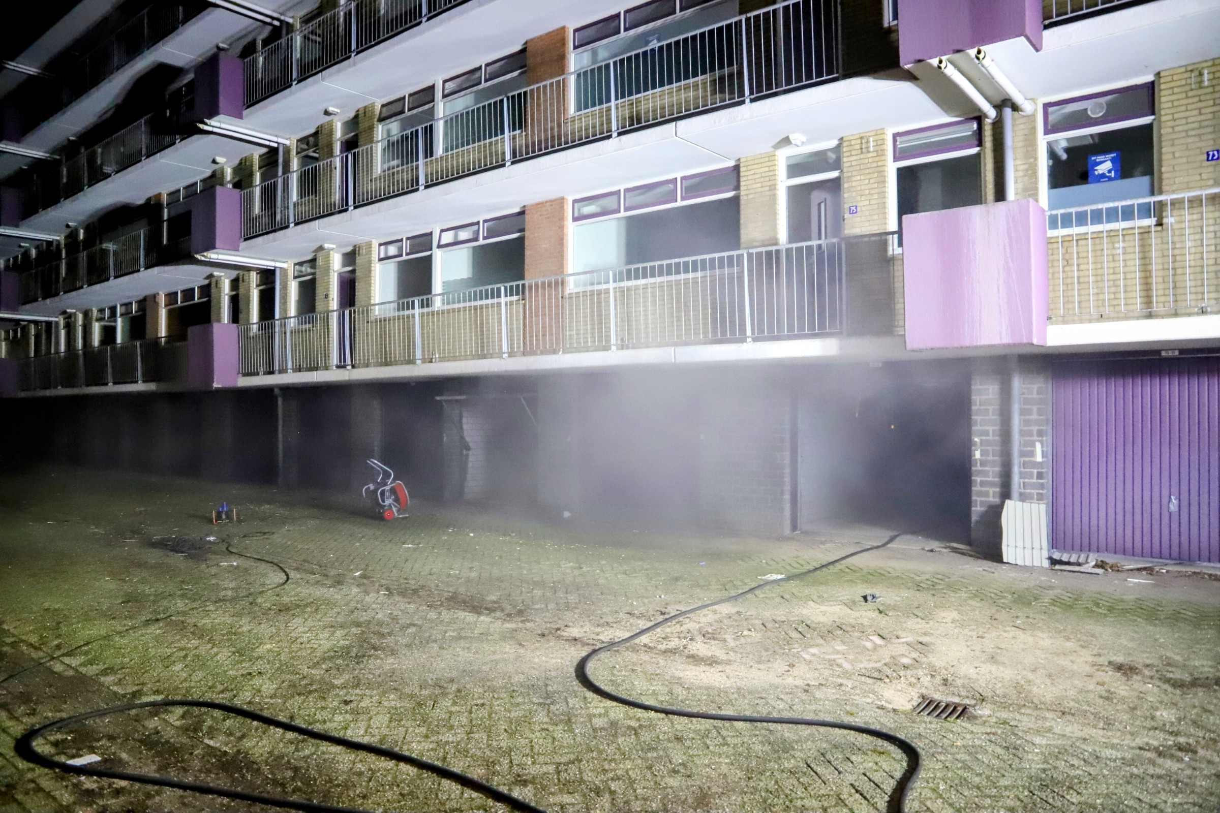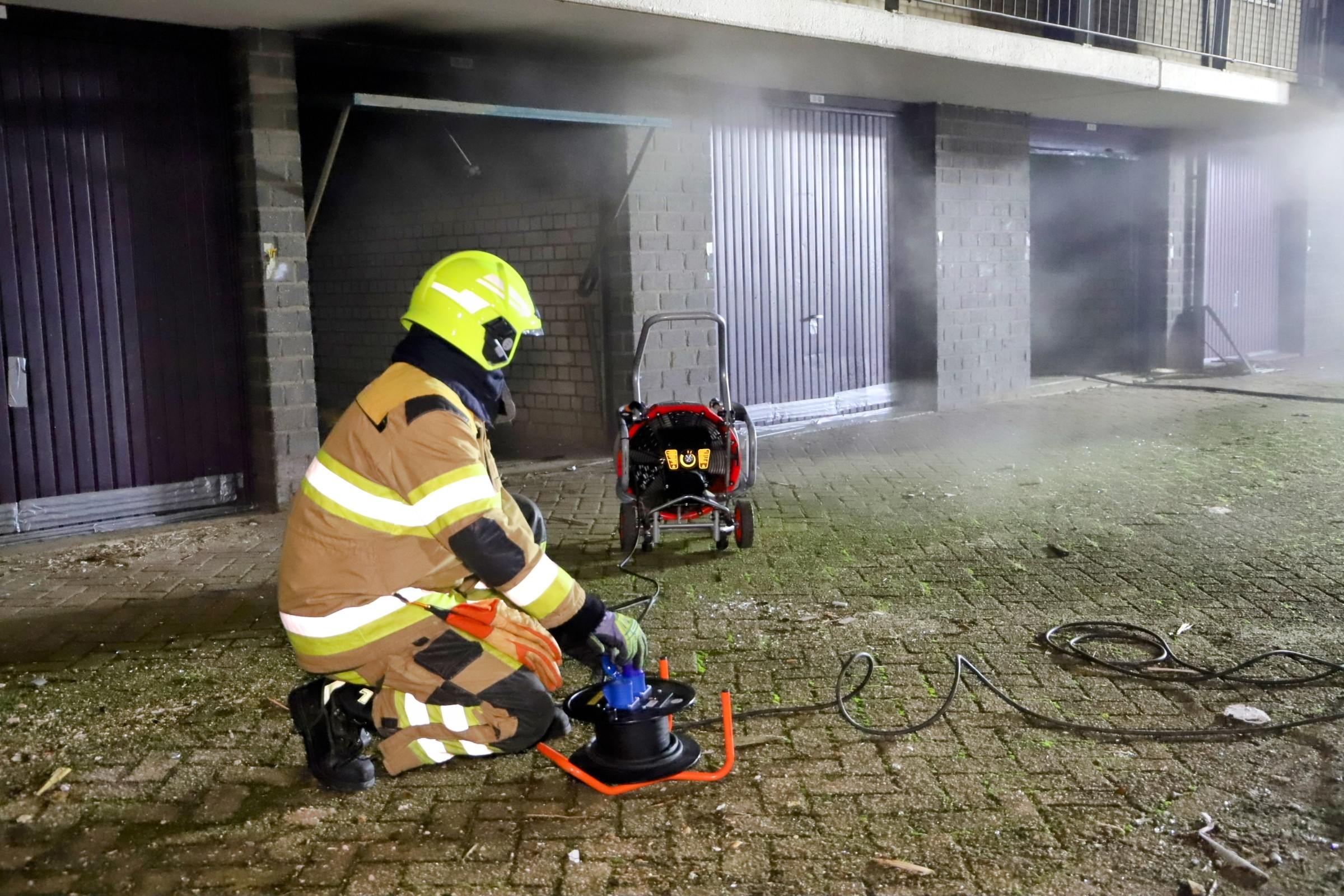 Bij aankomst trof de brandweer rook aan die uit meerdere garageboxen onder het gebouw kwam. Het vuur werd snel onder controle gebracht, waarna de ruimtes zijn geventileerd.
