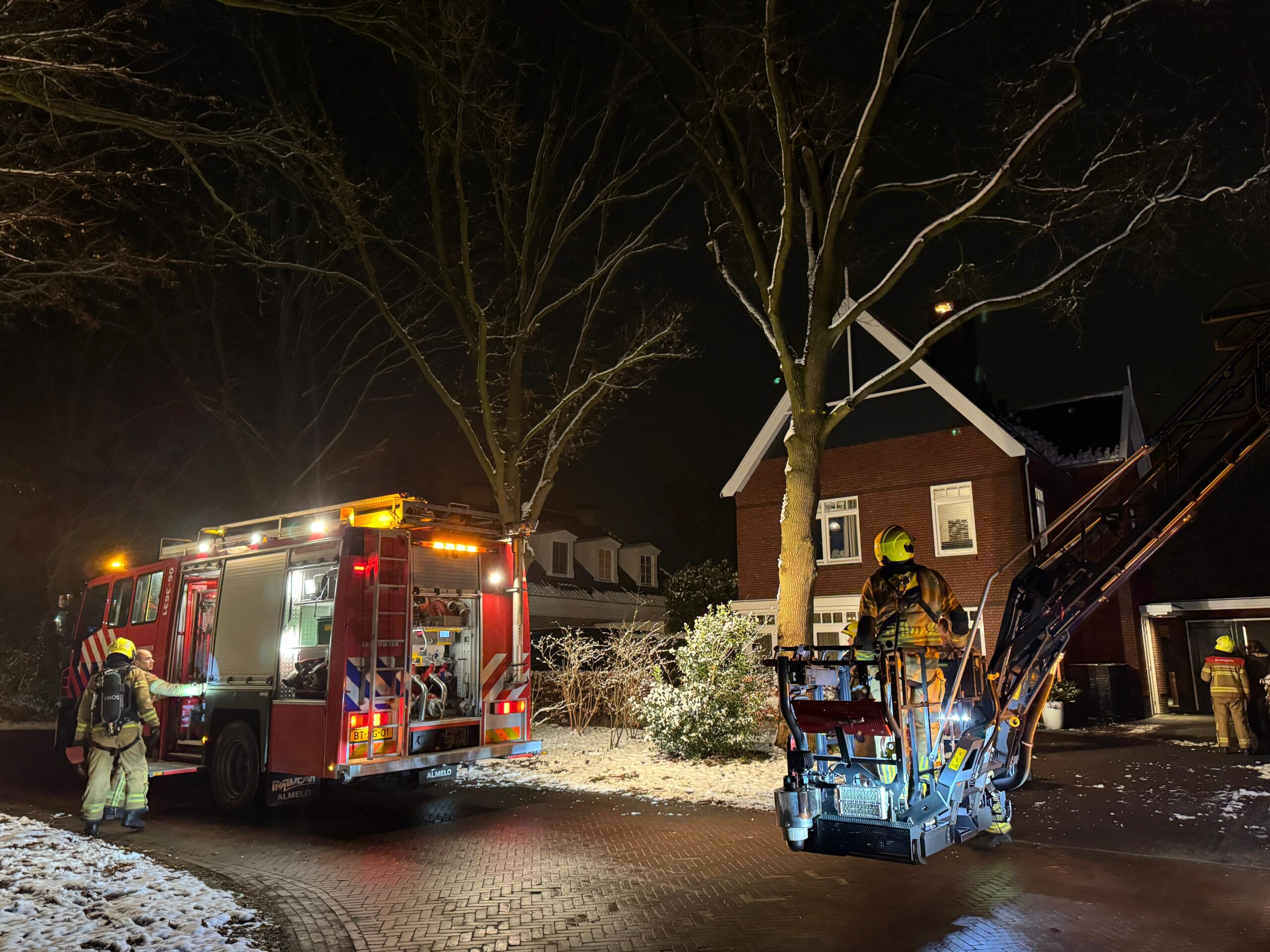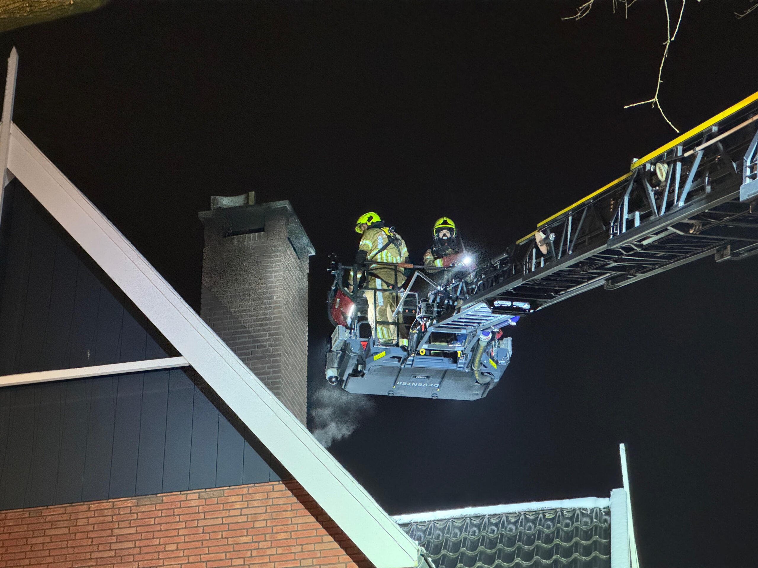 Brandweer blust schoorsteenbrand met inzet van hoogwerker