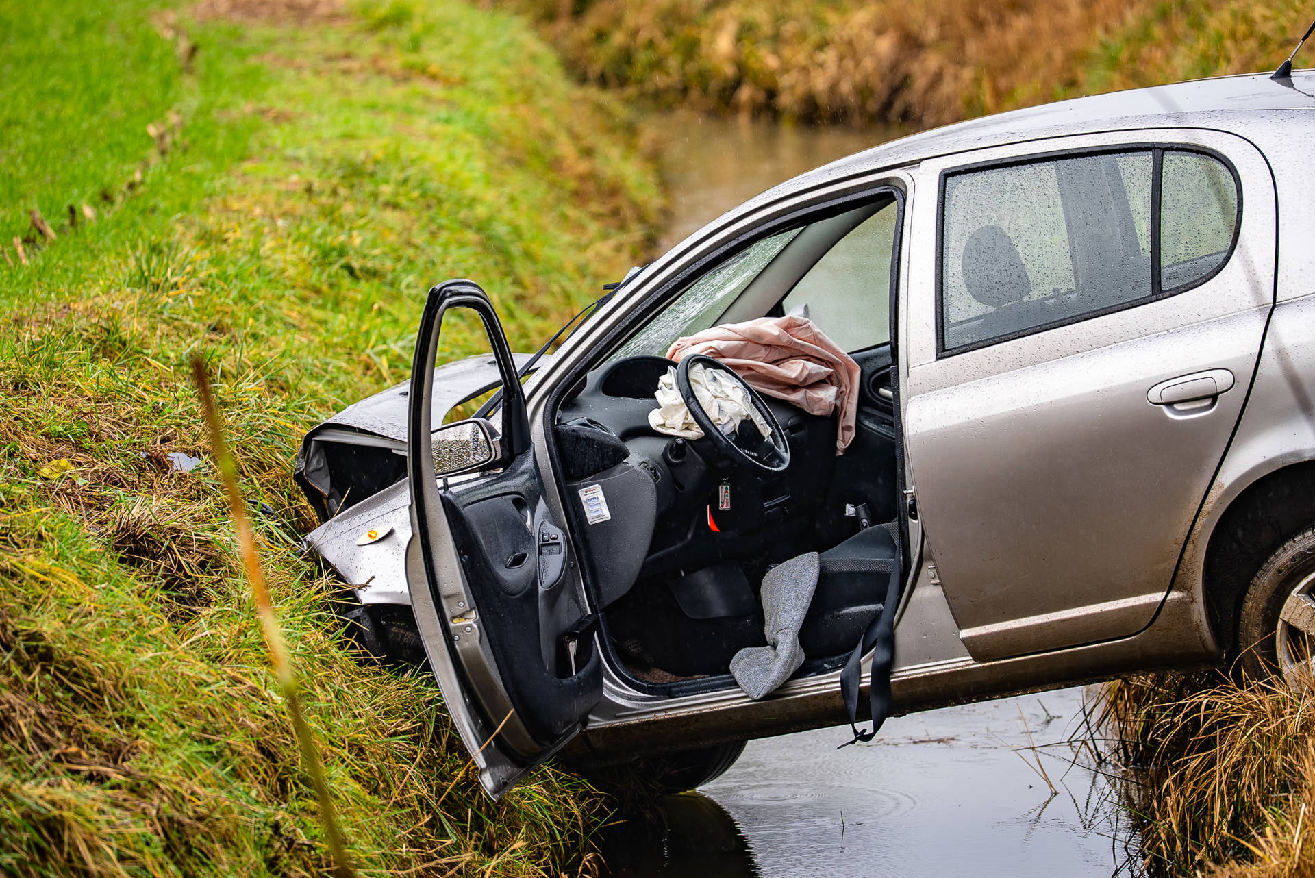 Twee inzittenden gewond na auto te water, traumahelikopter ingezet